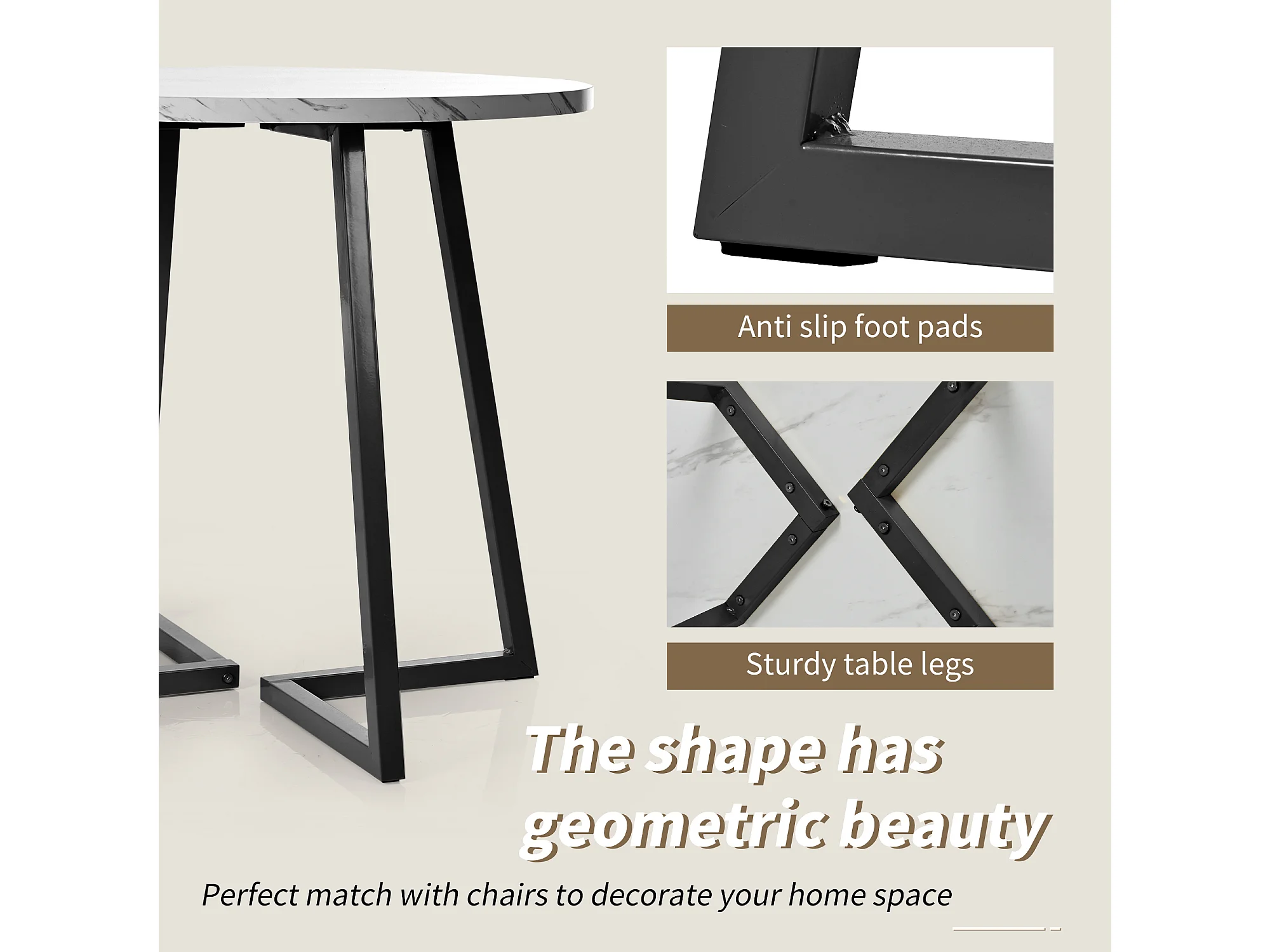 Tavolo da pranzo rotondo, design moderno con base in metallo, MDF, effetto marmo, bianco/nero, (80x80x75 cm)