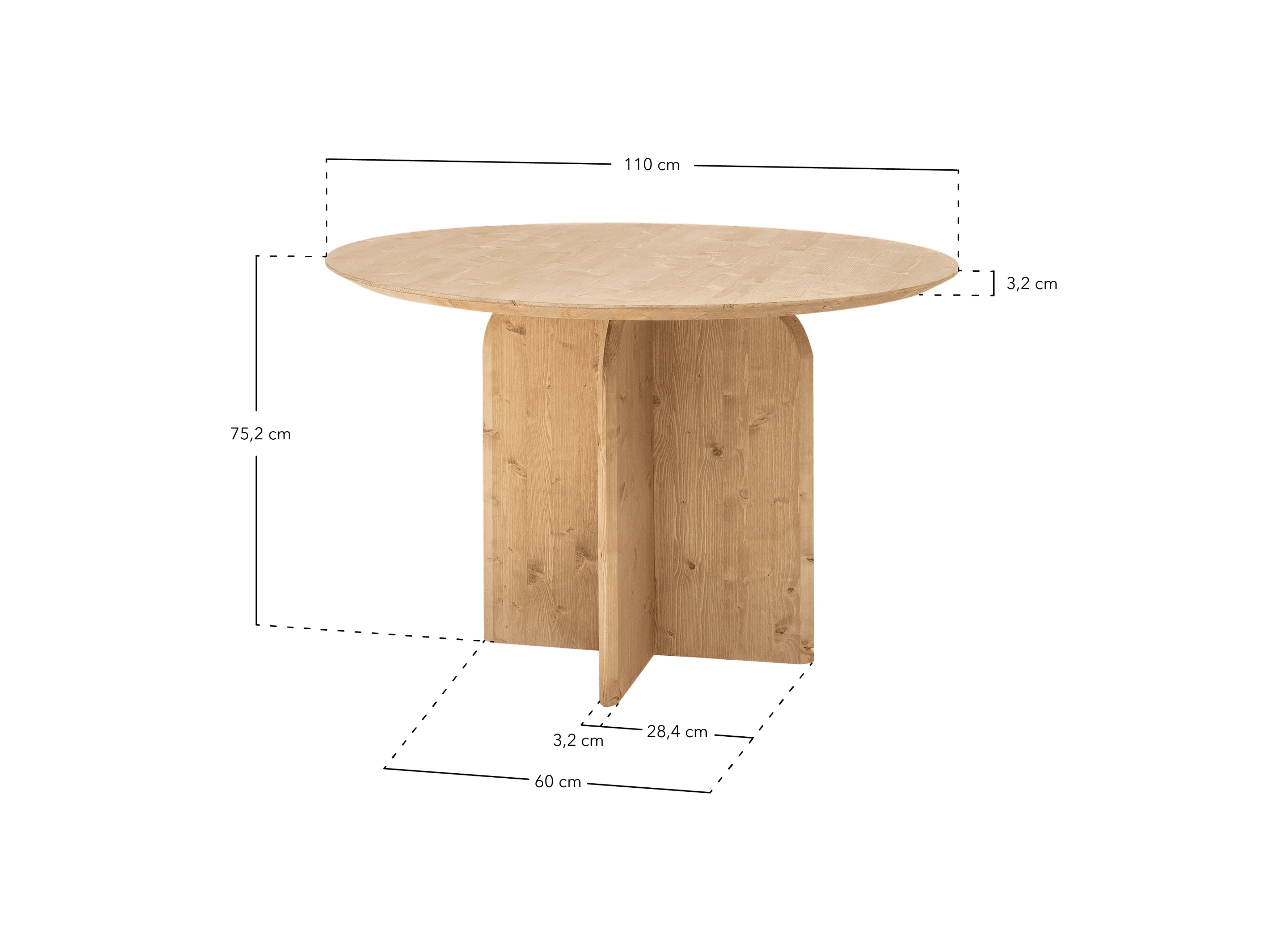 Tavolo da pranzo rotondo in legno di hevea e impiallacciatura di