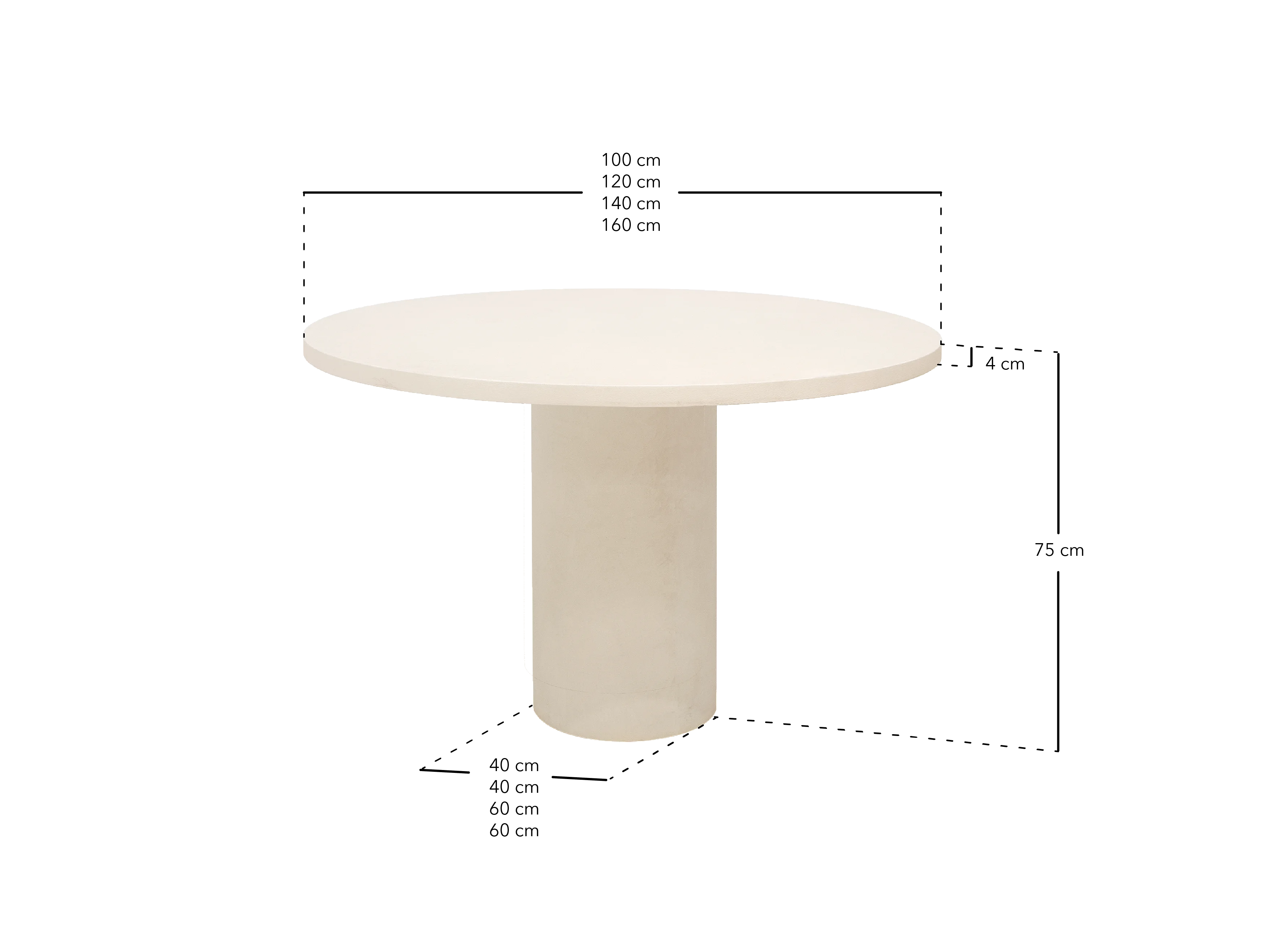 Tavolo da pranzo rotondo in microcemento in tono bianco rotto Ø100x75cm - LUCIA - DECOWOOD