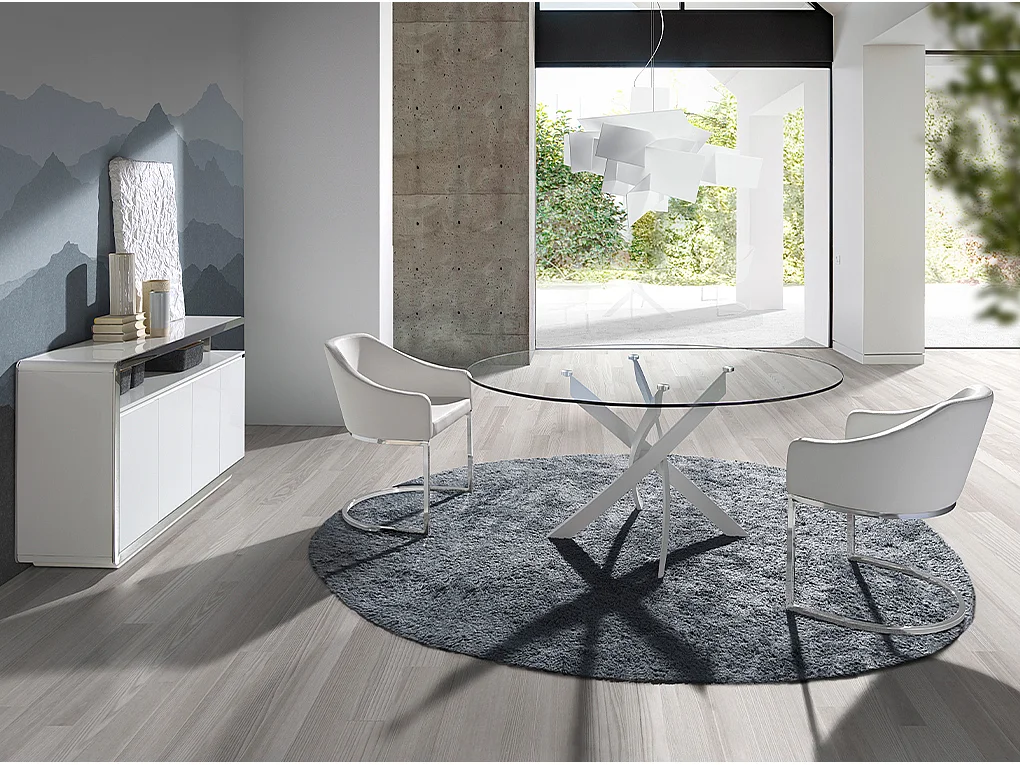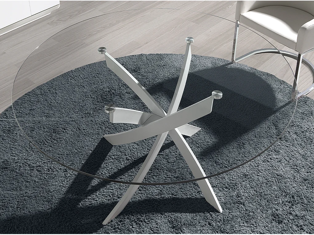 Tavolo da pranzo rotonda vetro temperato e acciaio bianco 1138-Ø110 ANGEL CERDA