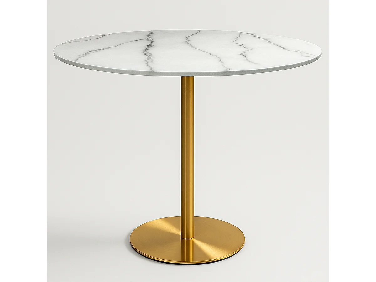Tavolo da pranzo rotondo stile Goblet 120cm effetto marmo dorato Monika+