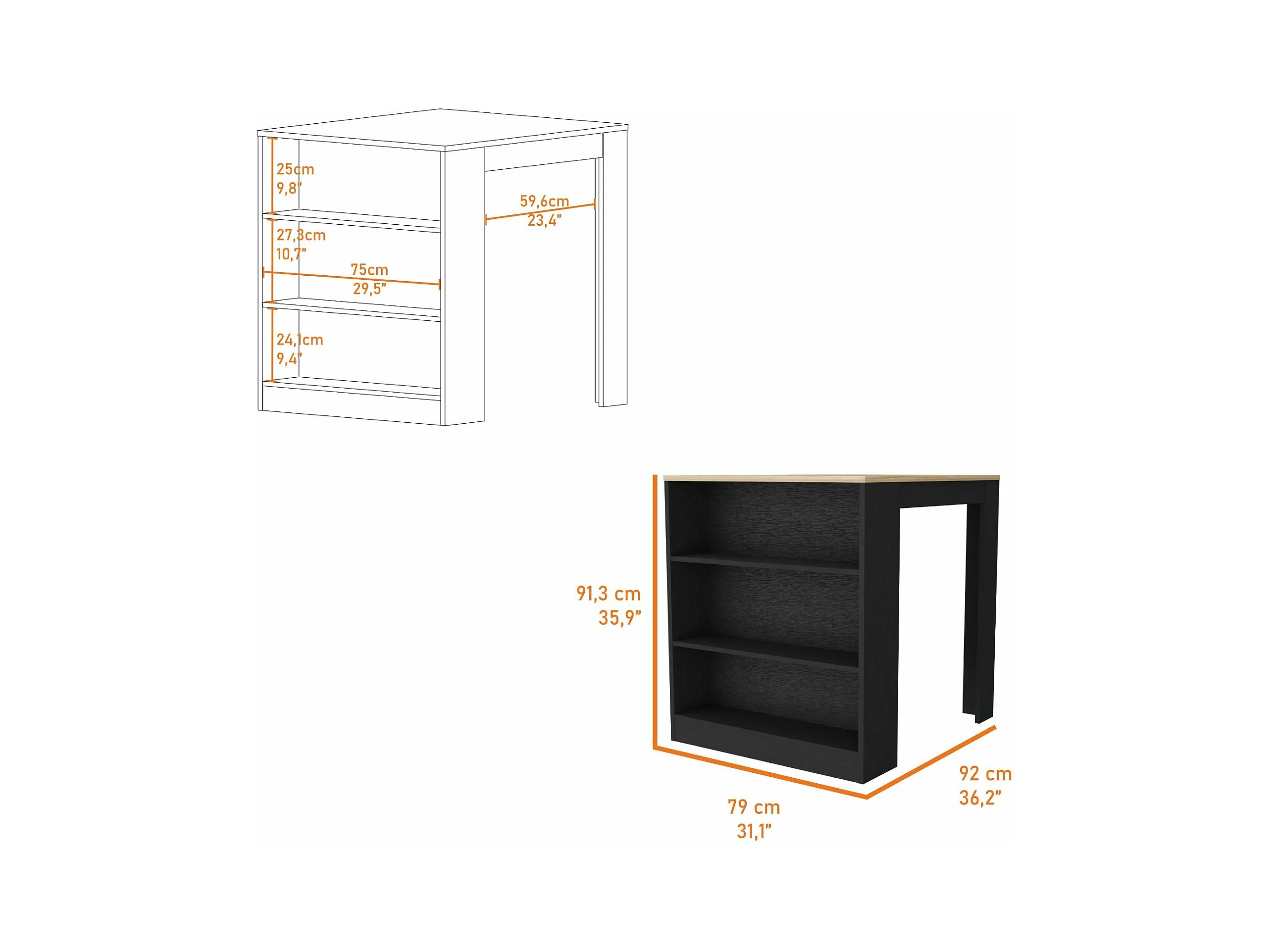 Tavolo da pranzo Tanna, con ripiani