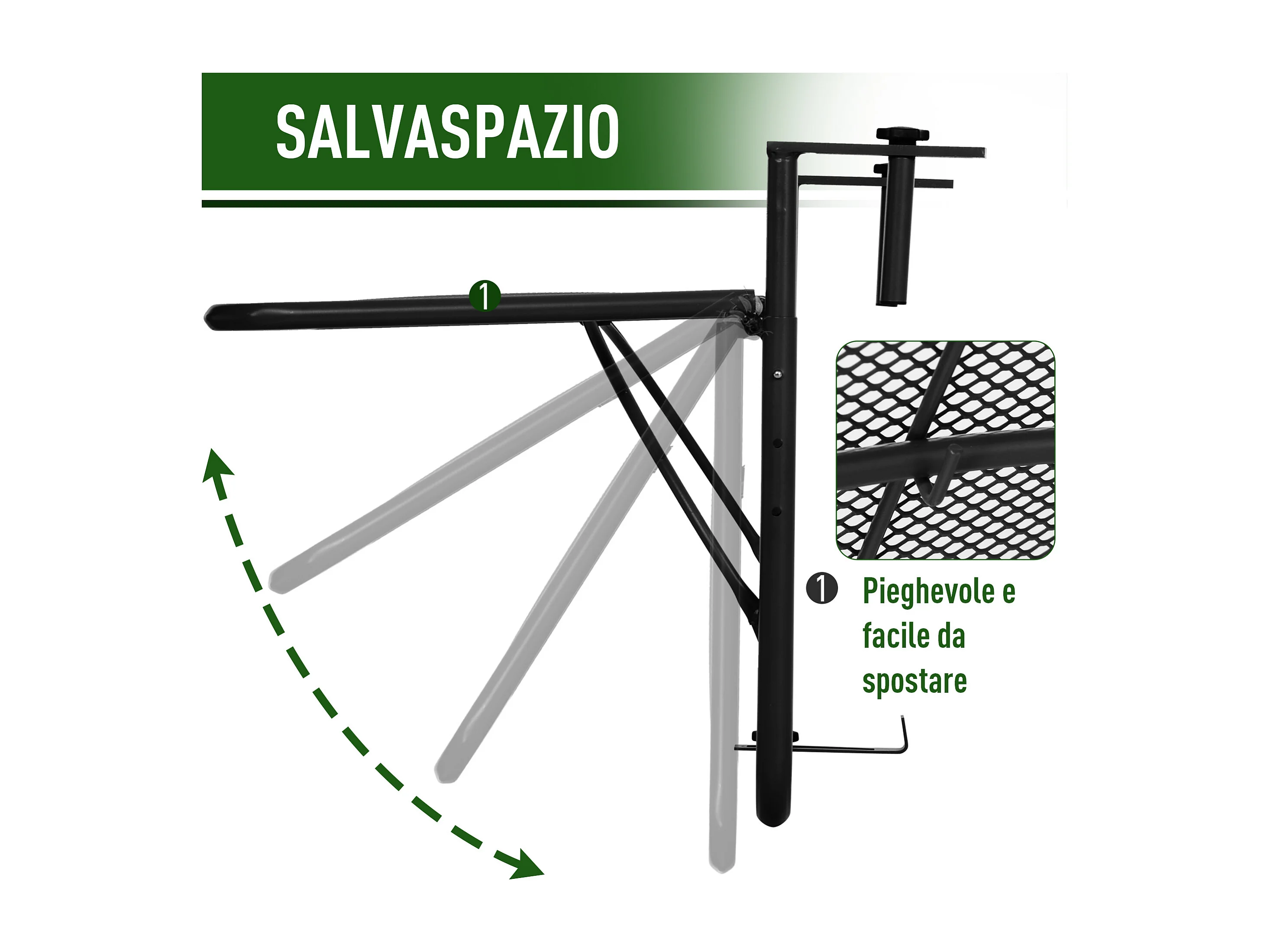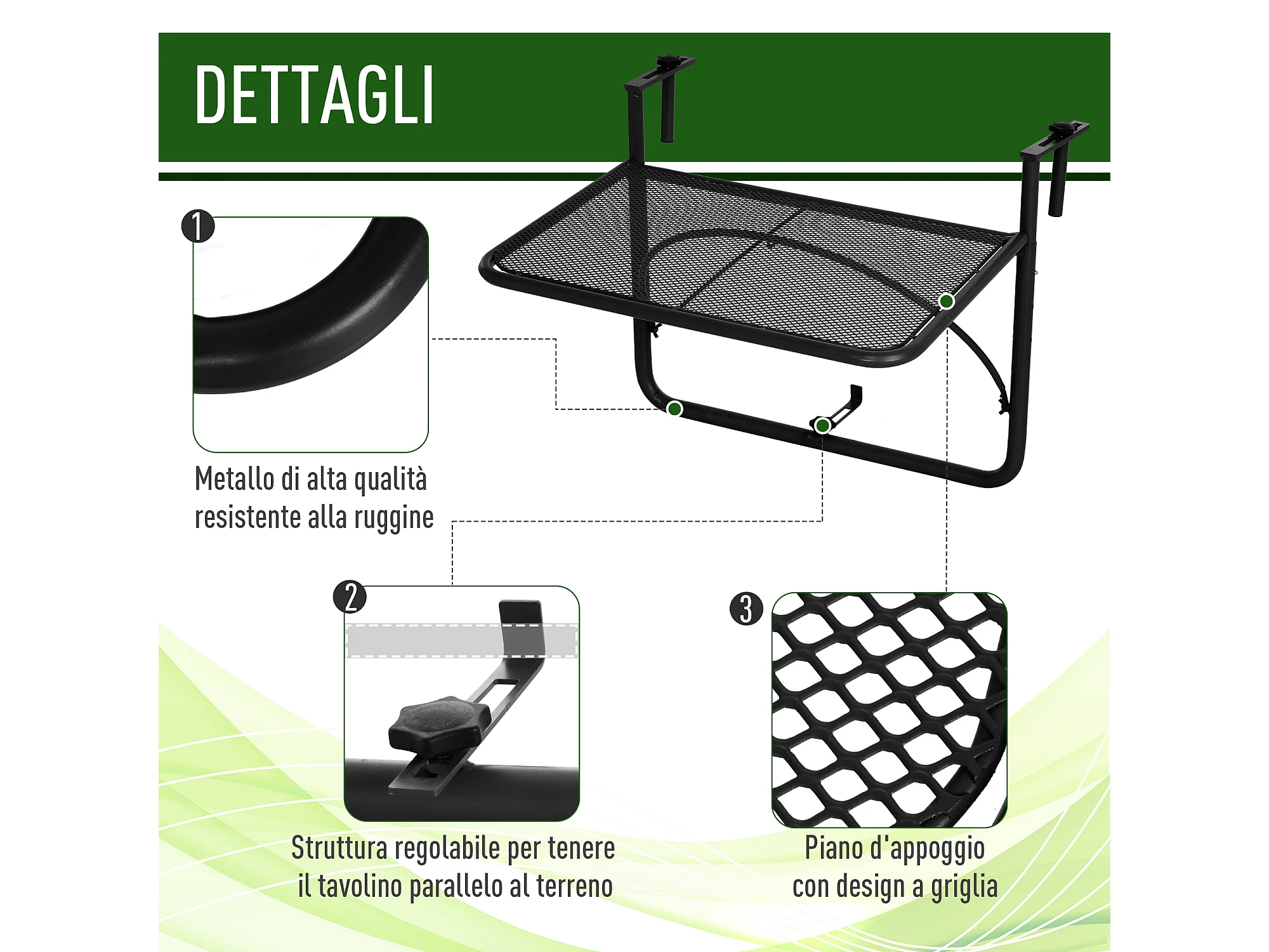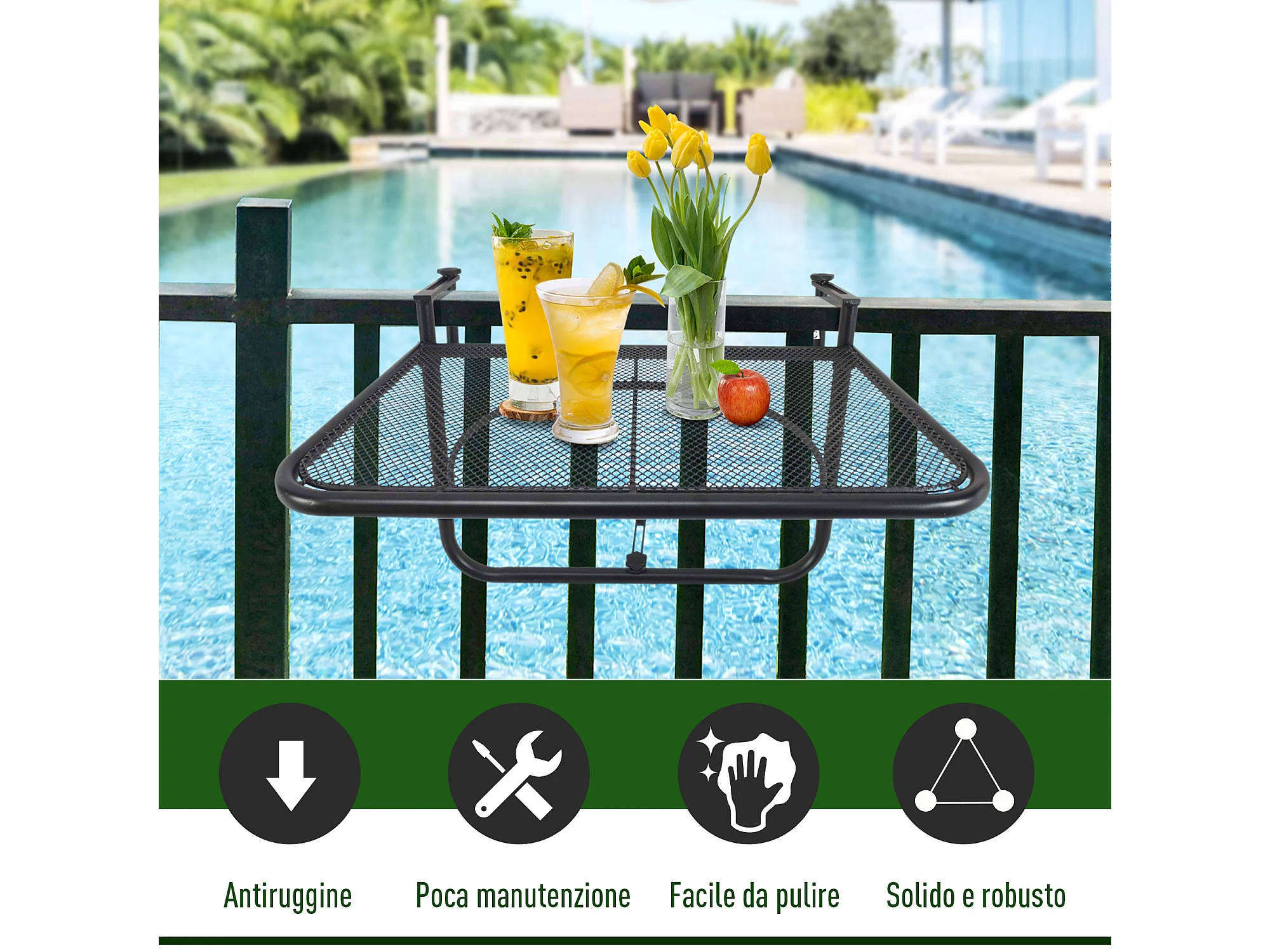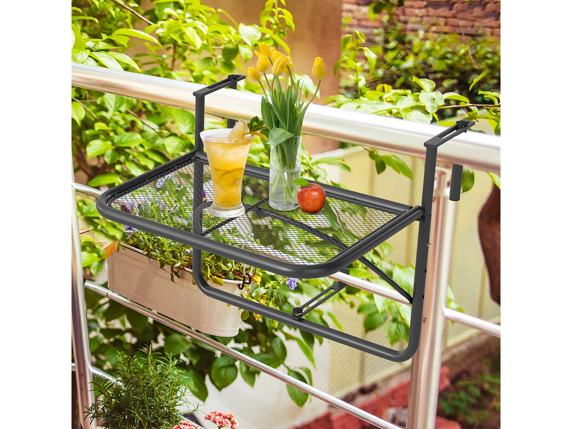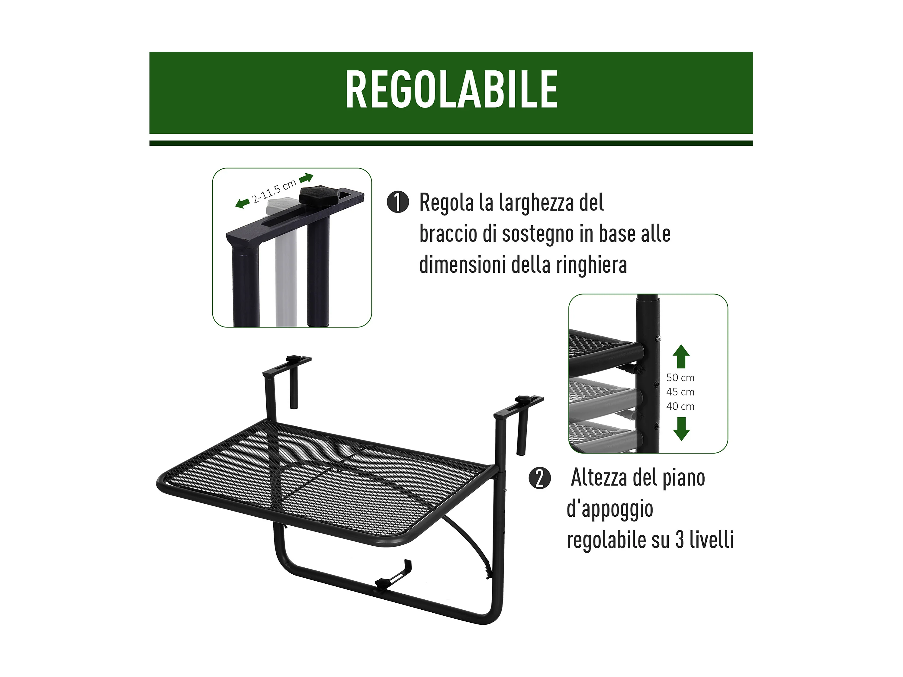 Tavolo da ringhiera ad altezza regolabile nero 60x56x50cm