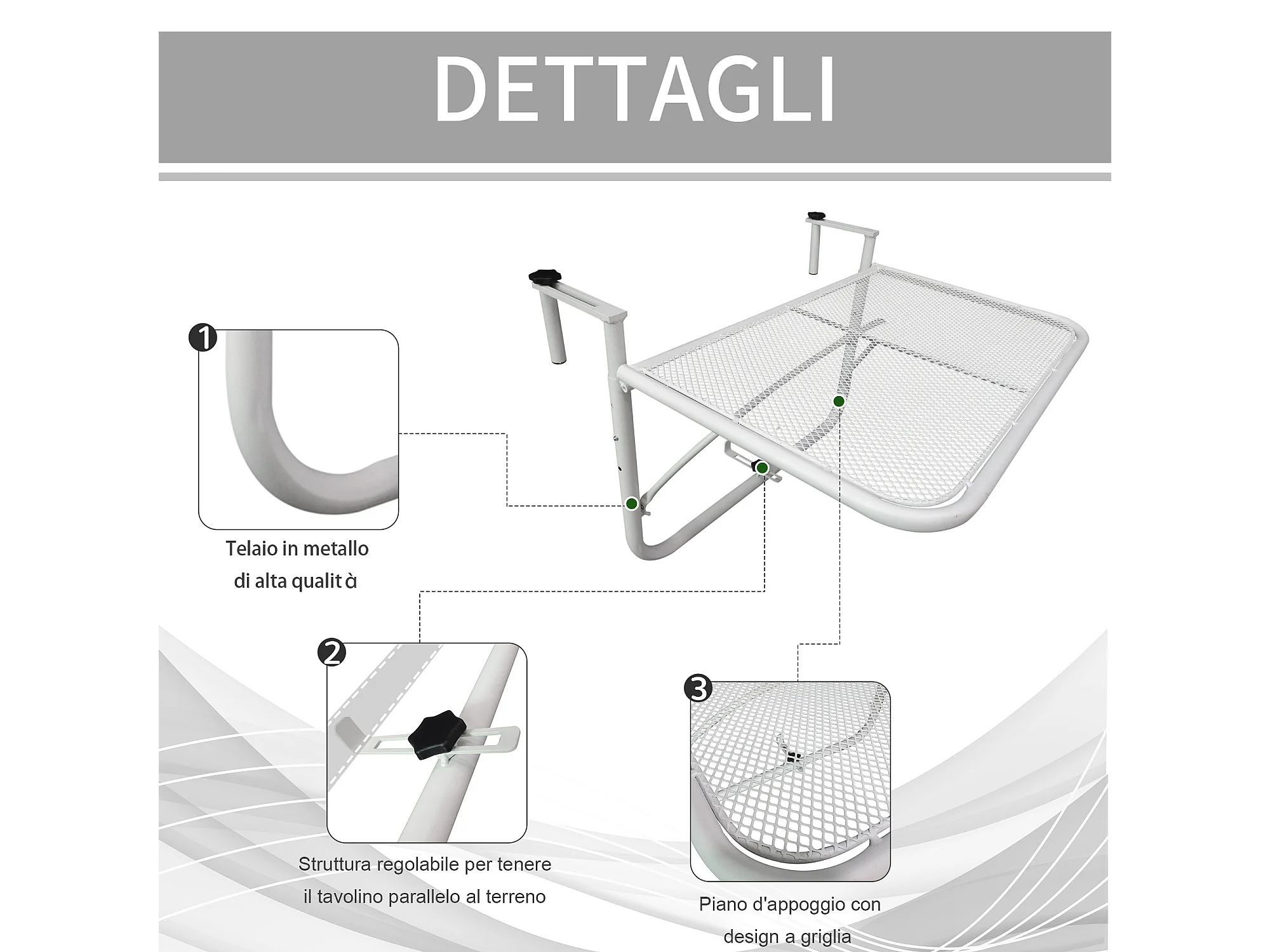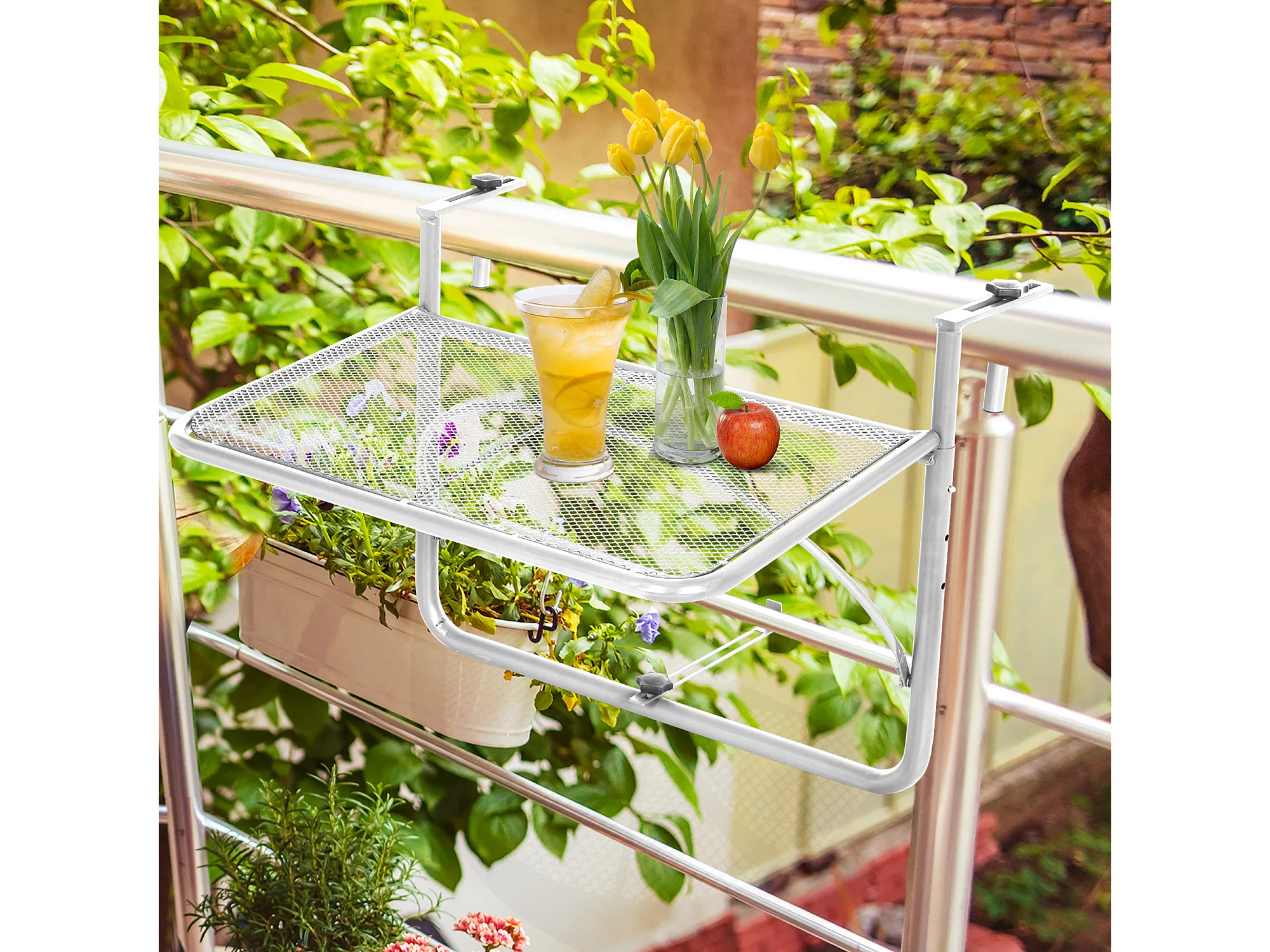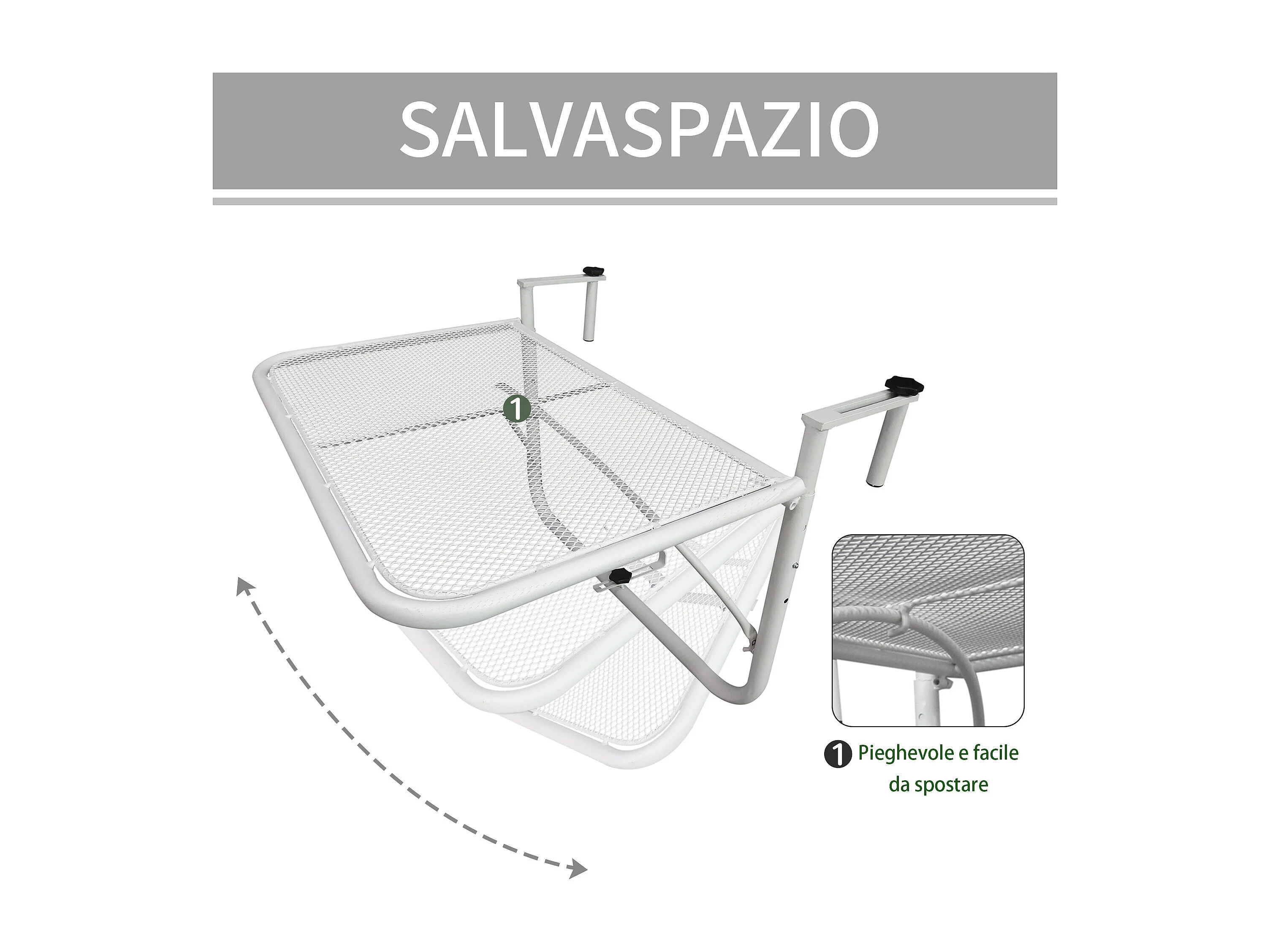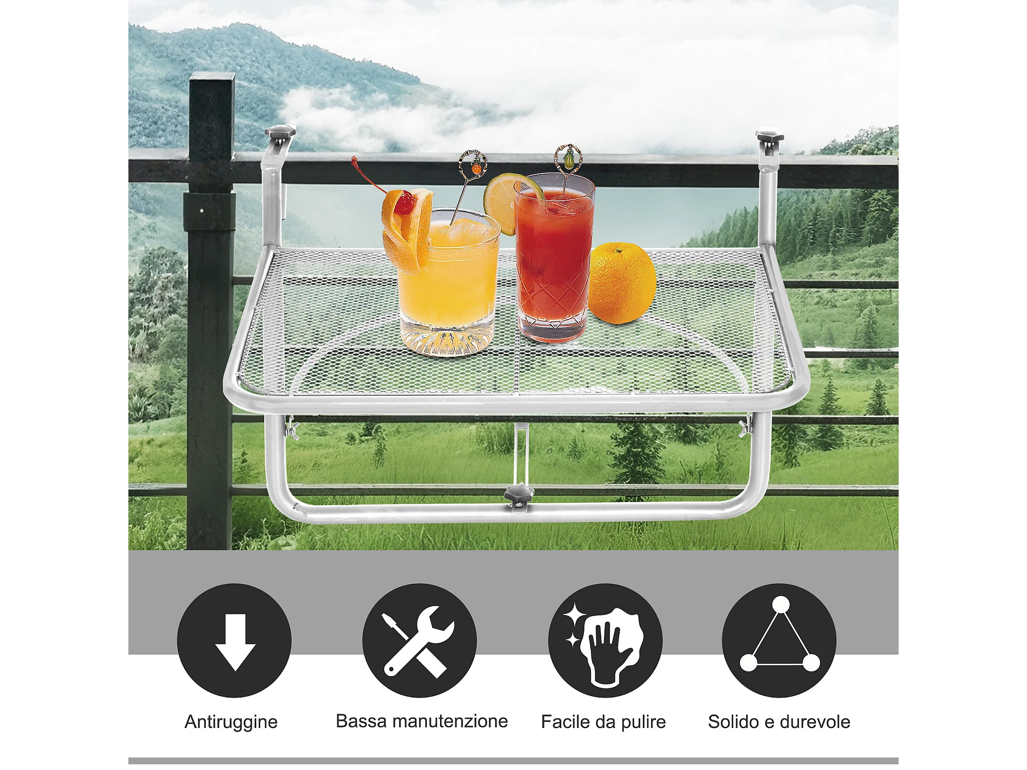 Tavolo da ringhiera altezza regolabile bianco 60x56x50cm
