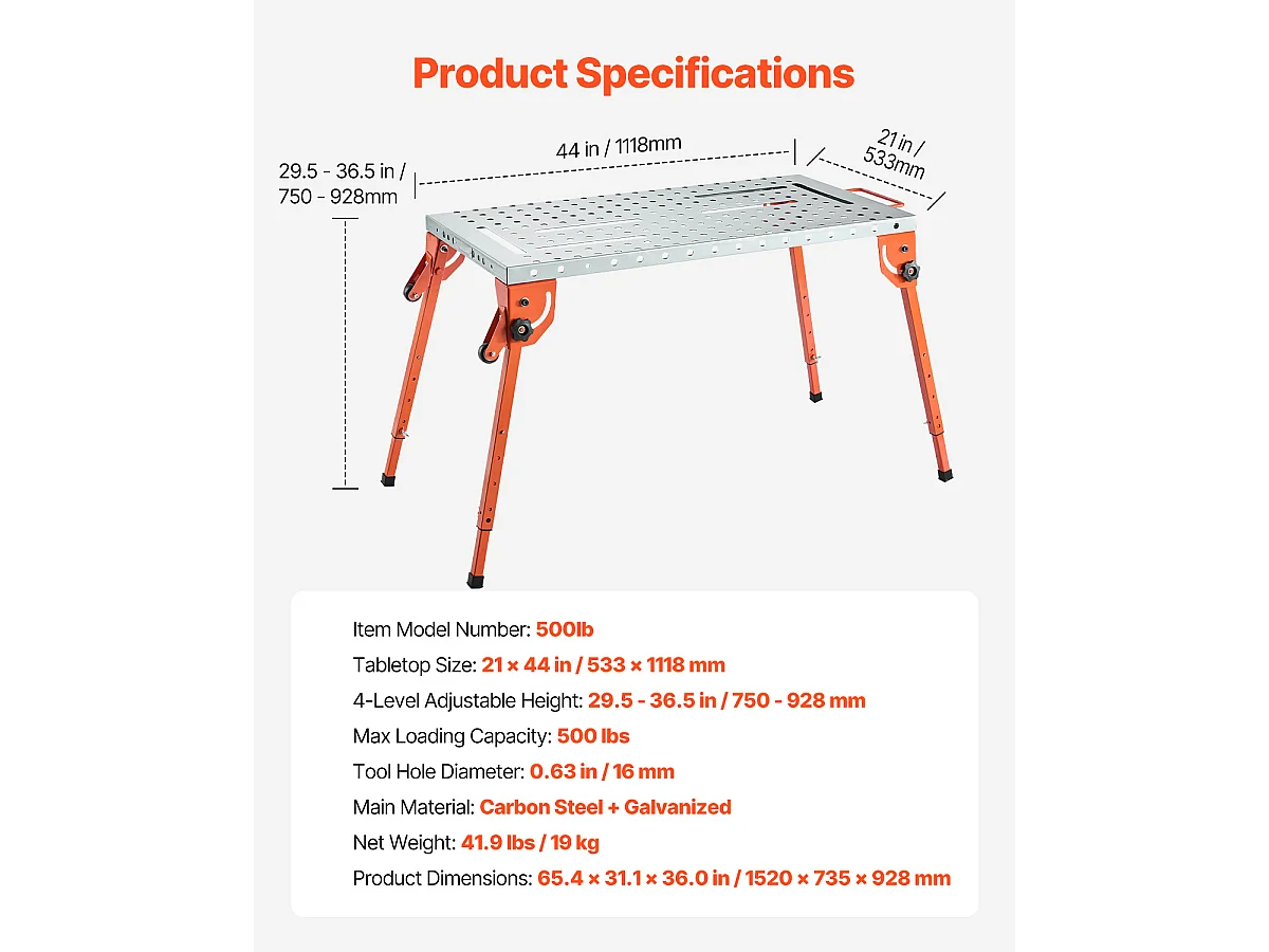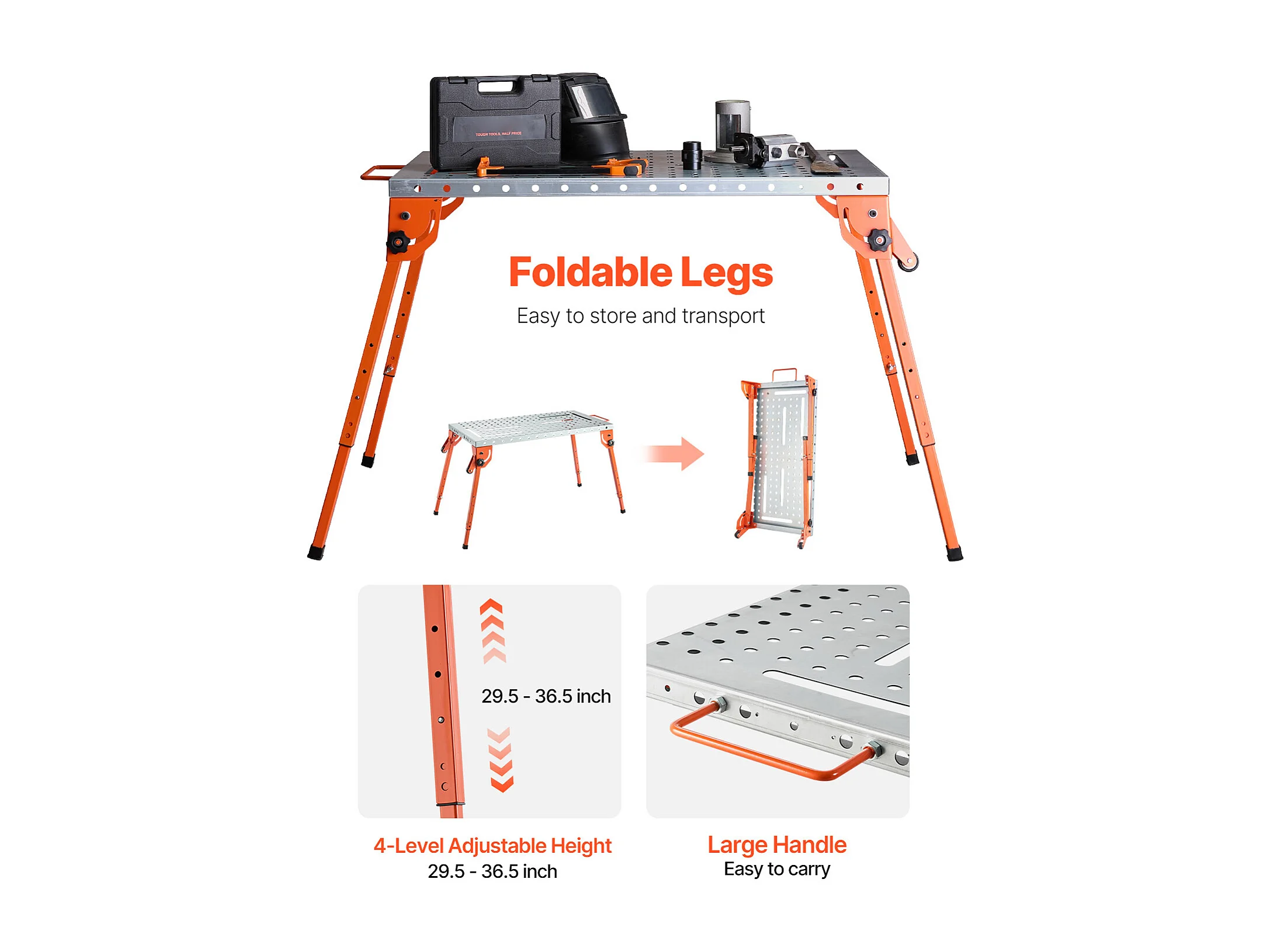 Tavolo da Saldatura, SucceBuy Tavolo da Saldatura 53.3 × 111.8 cm 227 kg Banco da Lavoro Pieghevole Regolabile in Altezza