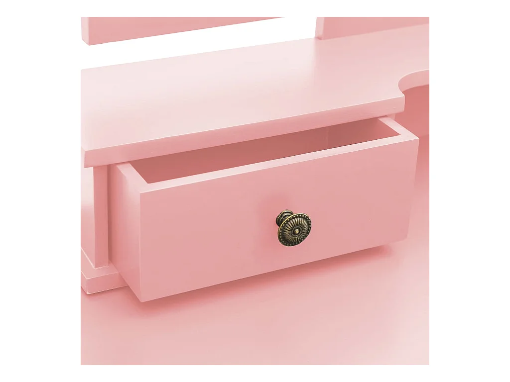Tavolo da Trucco con Sgabello e Specchio Pieghevole in 3 Rosa