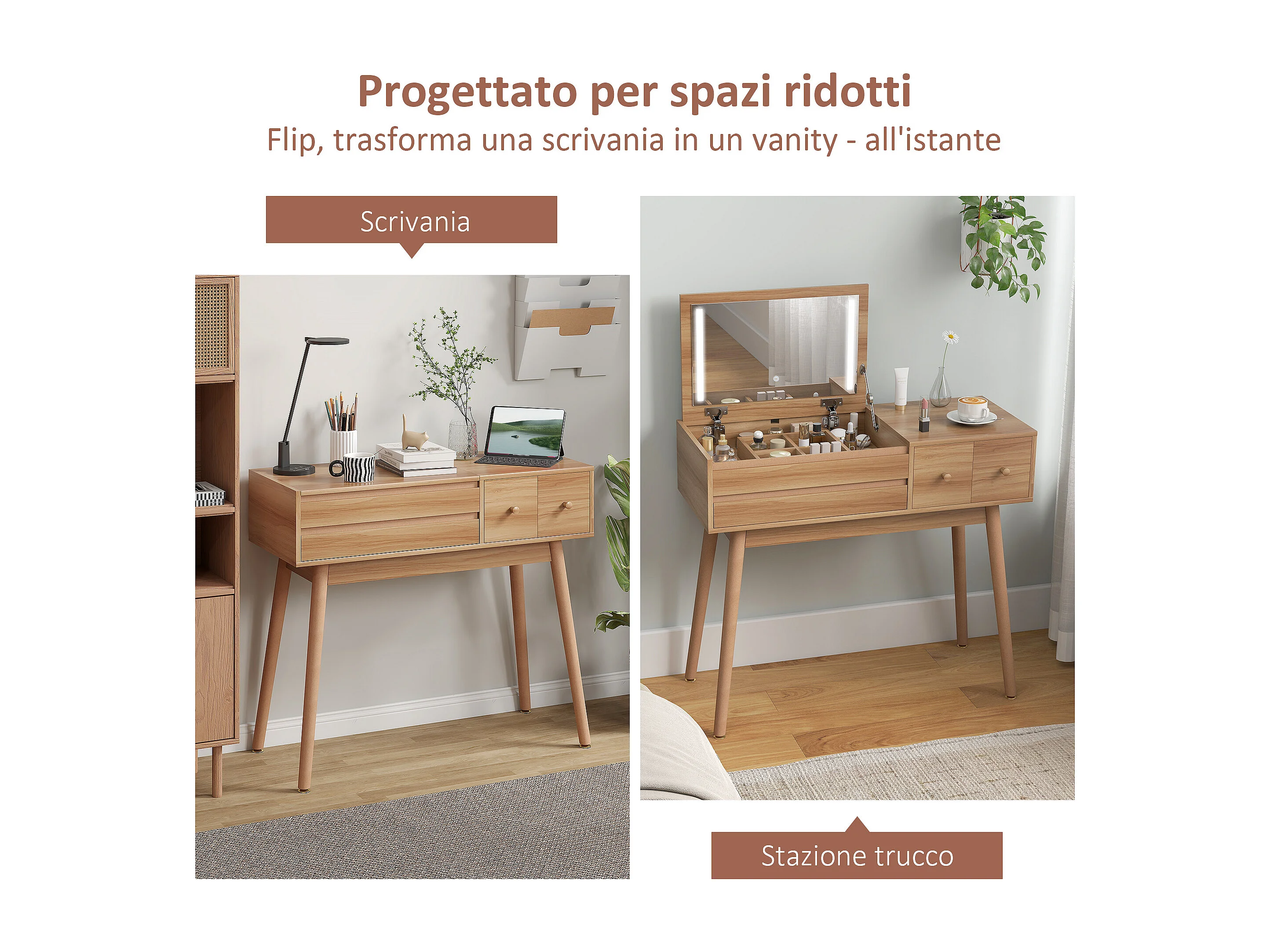 Tavolo da trucco scrivania 2 in 1 con specchio e spazio contenitore