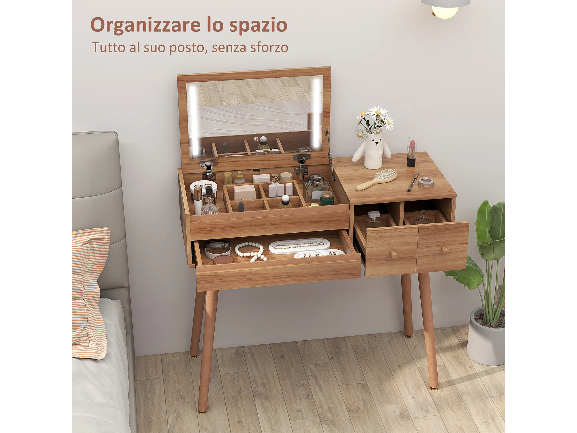 Tavolo per trucco acero con armadietto, cassetto, ripiani e specchio