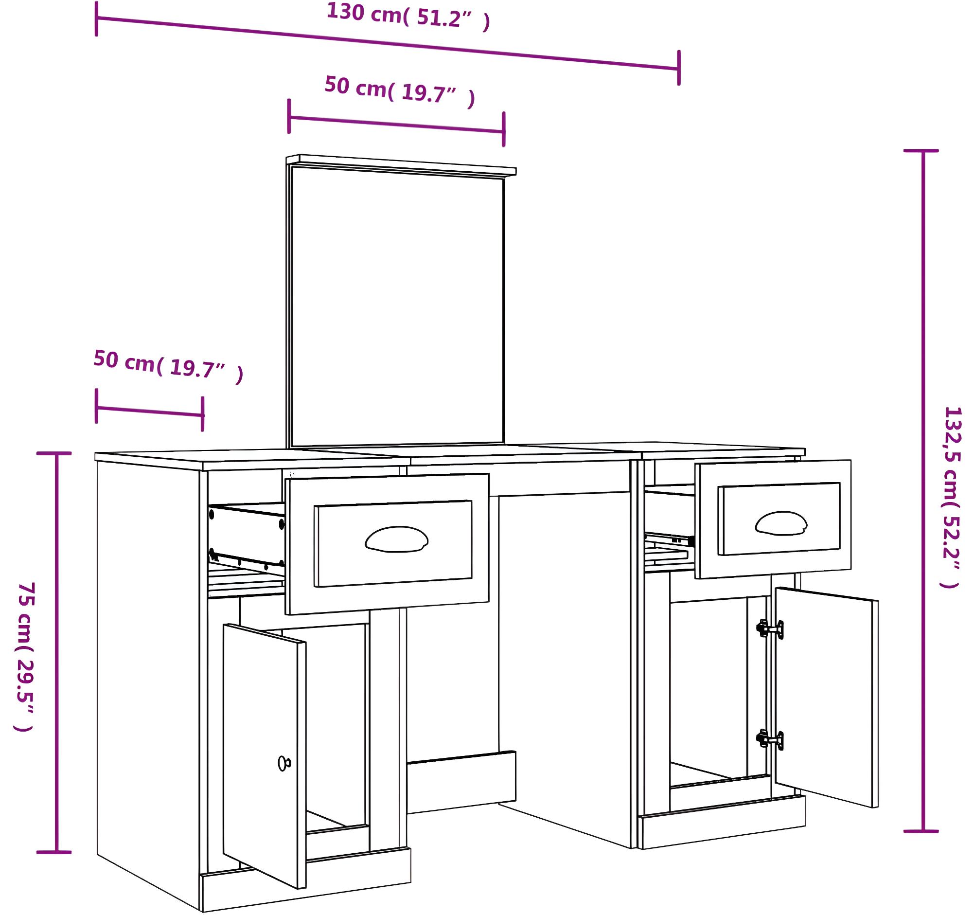 Toeletta con Specchio Rovere Sonoma 130x50x132,5 cm