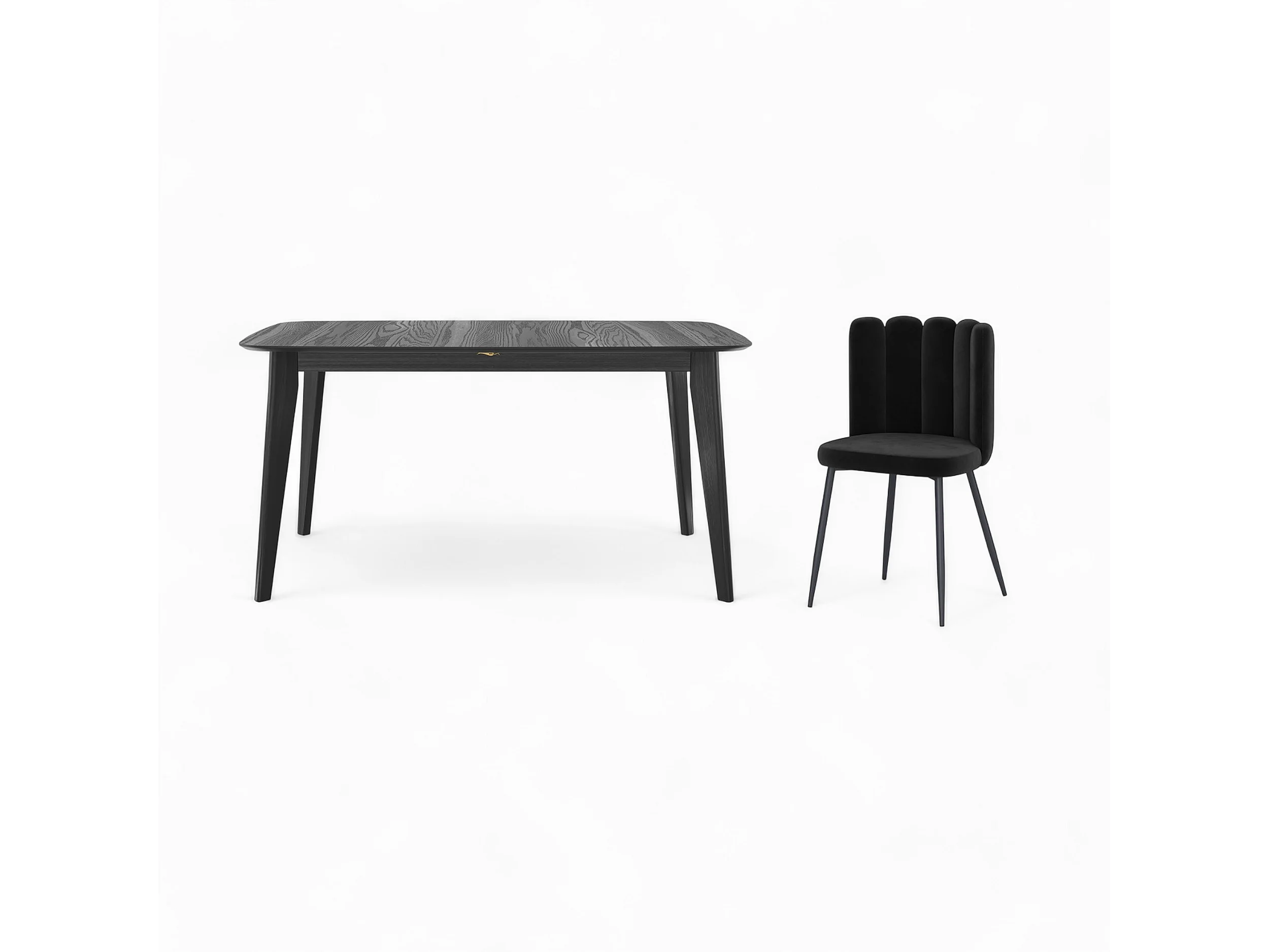 Tavolo e sedie per 4 persone in velluto e legno nero - Oman