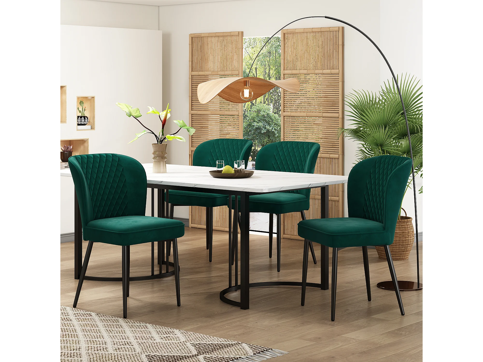 Tavolo Ensemble 140×80 cm MDF + 4 chaises velours vert foncé pieds noirs