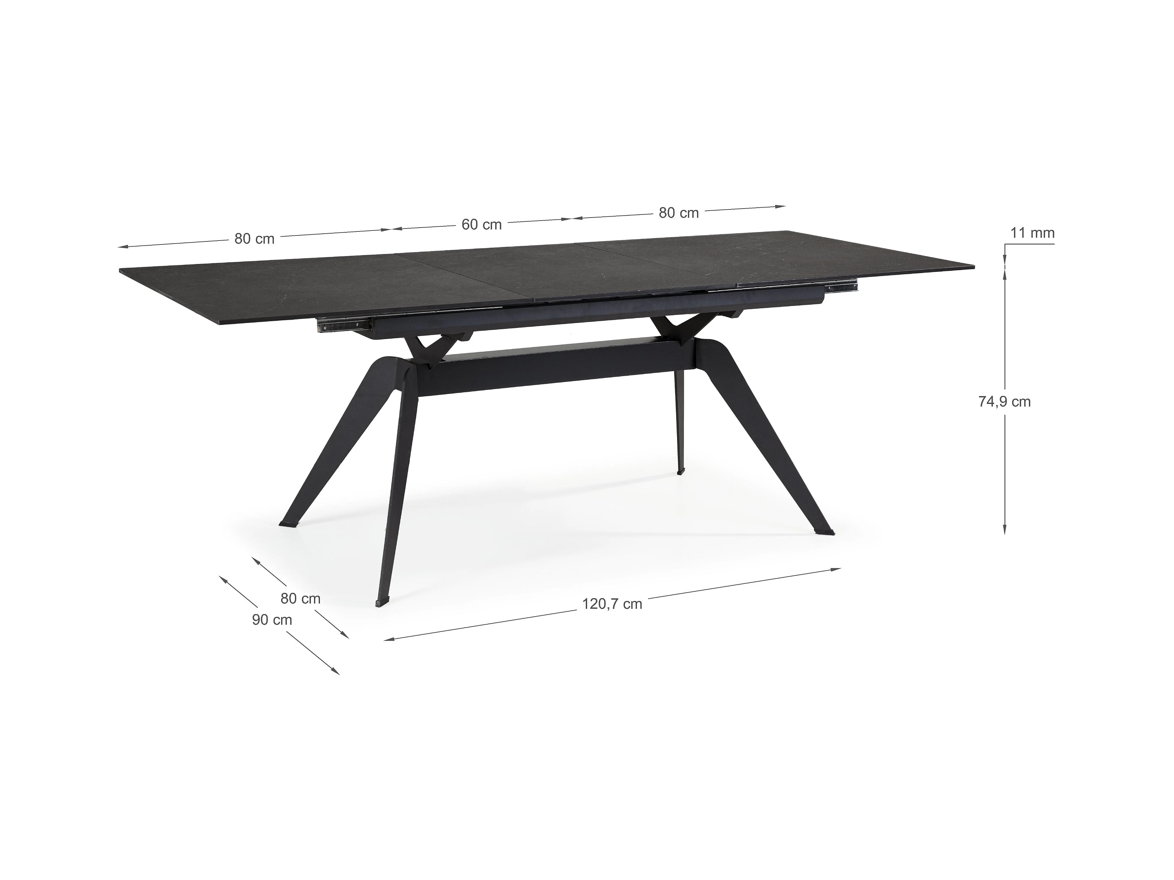 Consolle allungabile, 160x90x73cm, Per 8 persone, Gambe in legno, Nero
