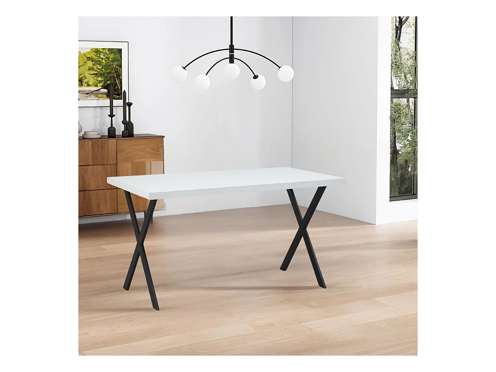 Tavolo fisso rettangolare Brayn colore bianco 139x80x76H gambe in metallo nero