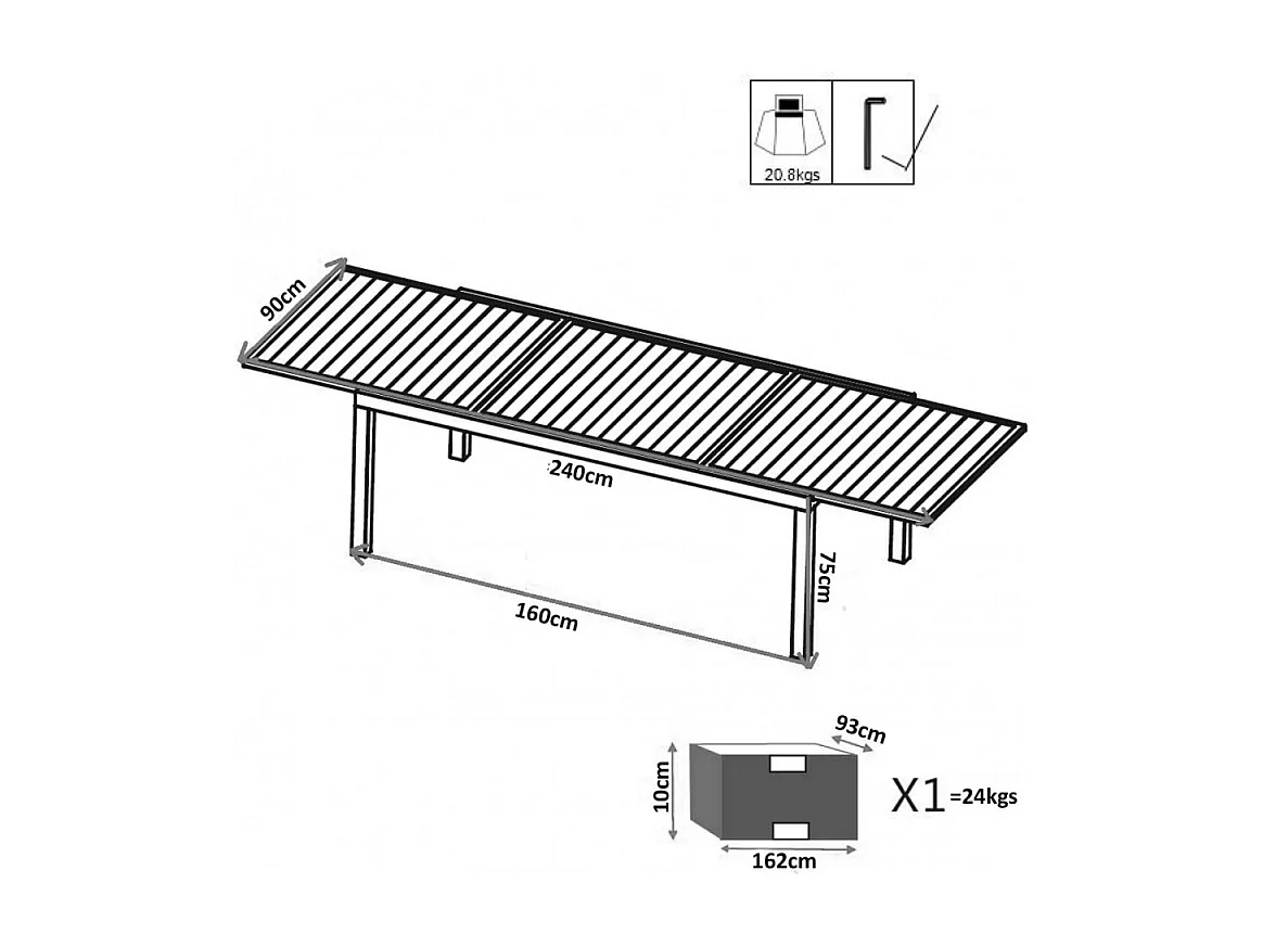 TAVOLO FORMENTERA 160/240 X 90