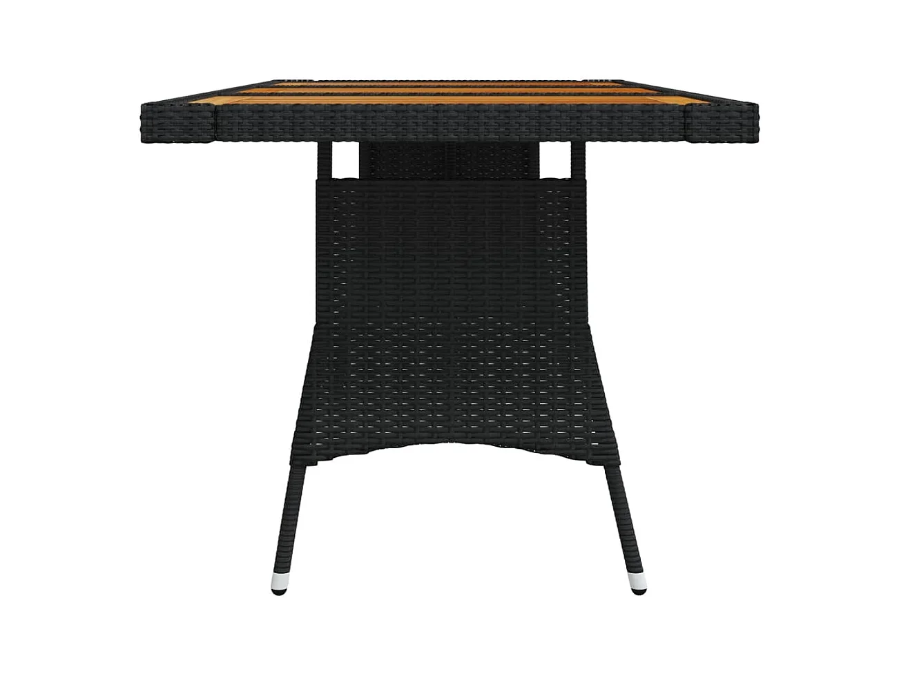 Tavolo Giardino Nero 130x70x72cm Polyrattan e Massello d'Acacia