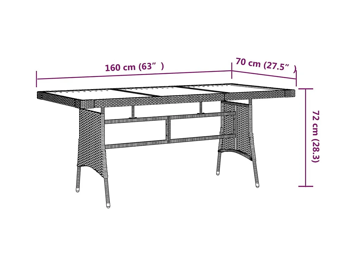 Tavolo Giardino Nero 160x70x72cm Polyrattan e Massello d'Acacia
