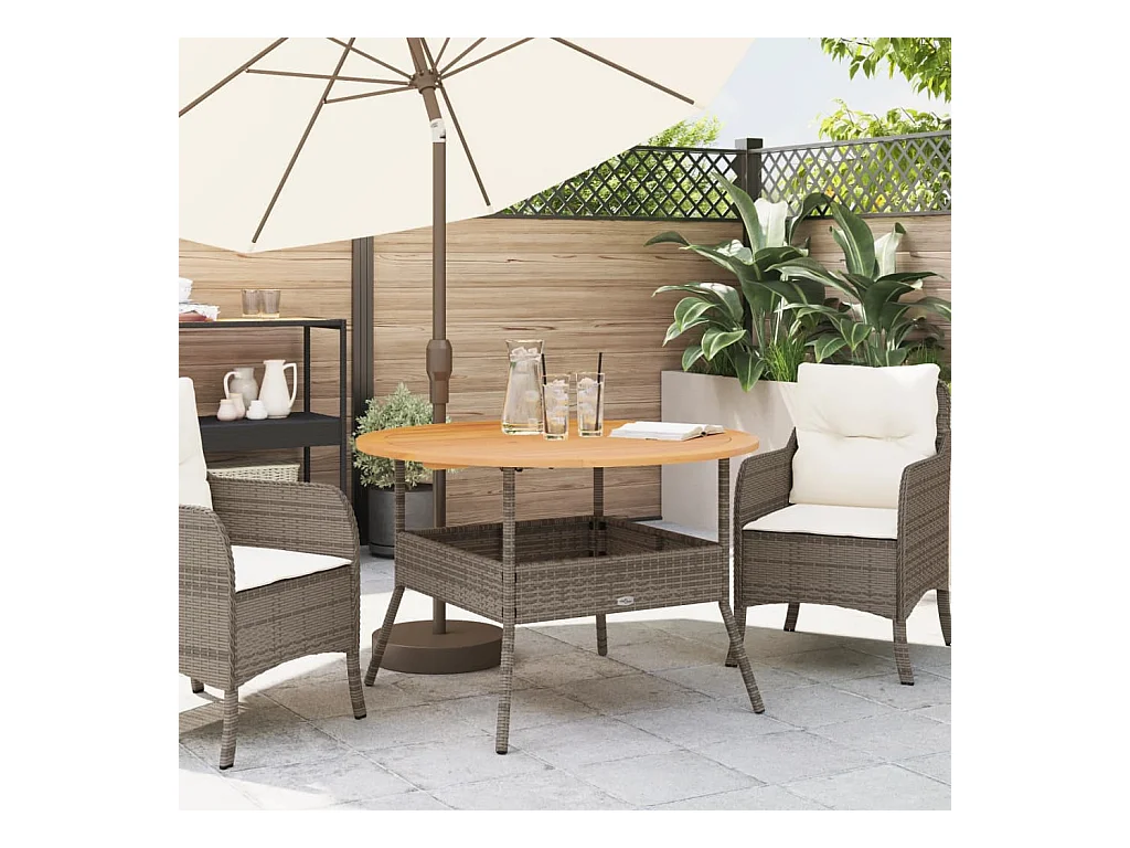 Tavolo Giardino Piano Legno Acacia Grigio Ø110x71 cm Polyrattan