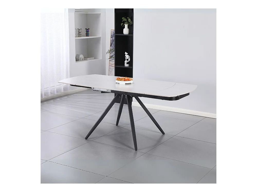 Tavolo girevole allungabile Kitti con piano in ceramica effetto marmo larice beige 120x88x76H