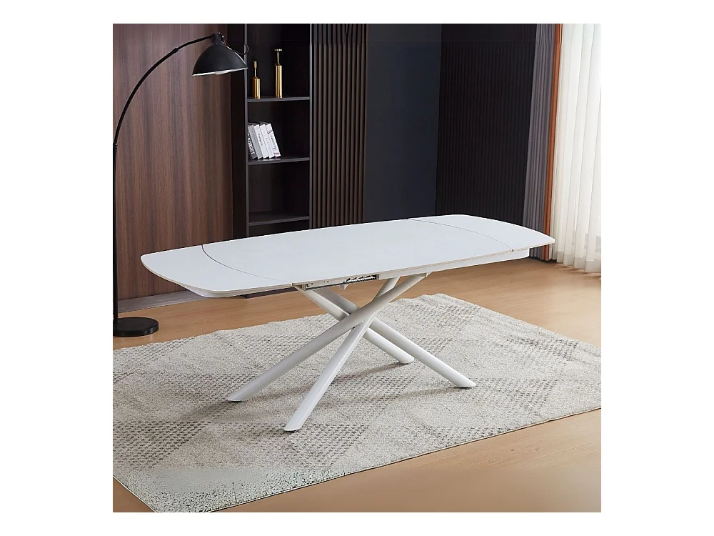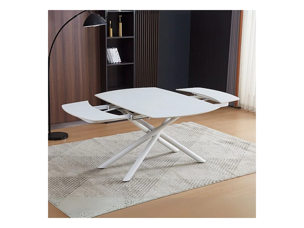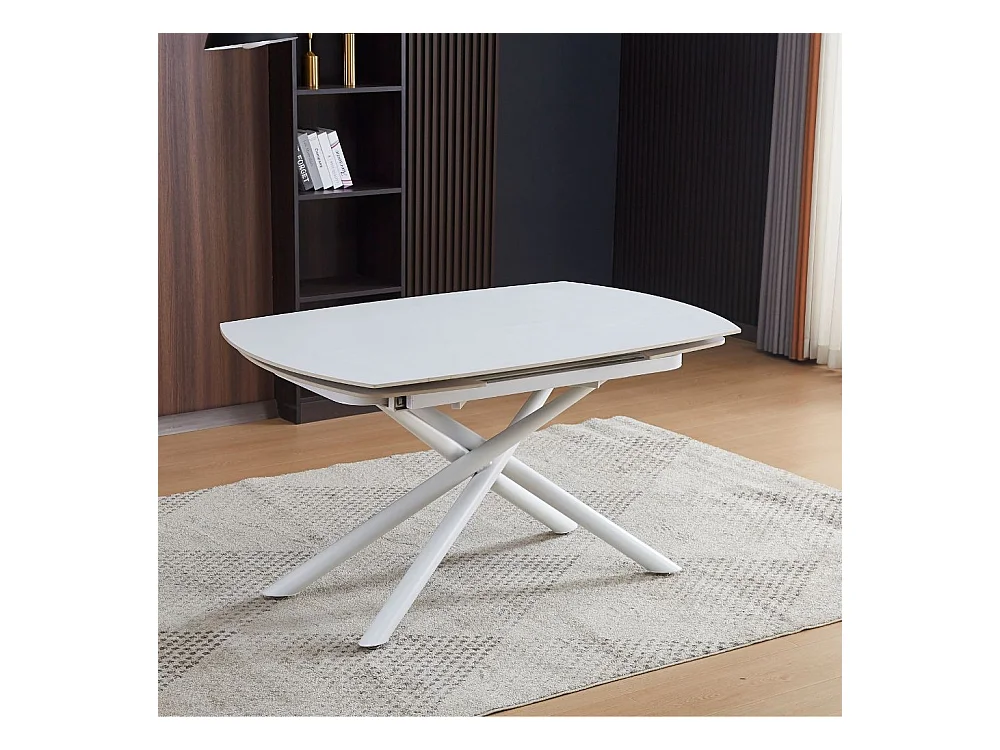 Tavolo girevole allungabile piano ceramica effetto marmo bianco opaco Astrid 140x90x76H