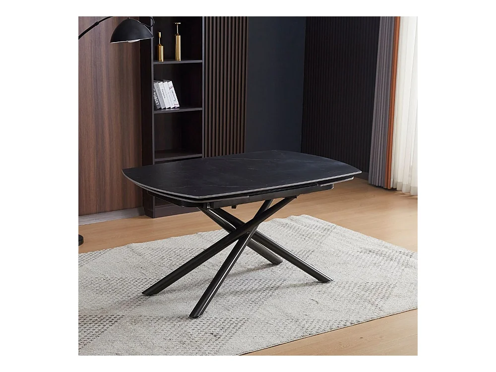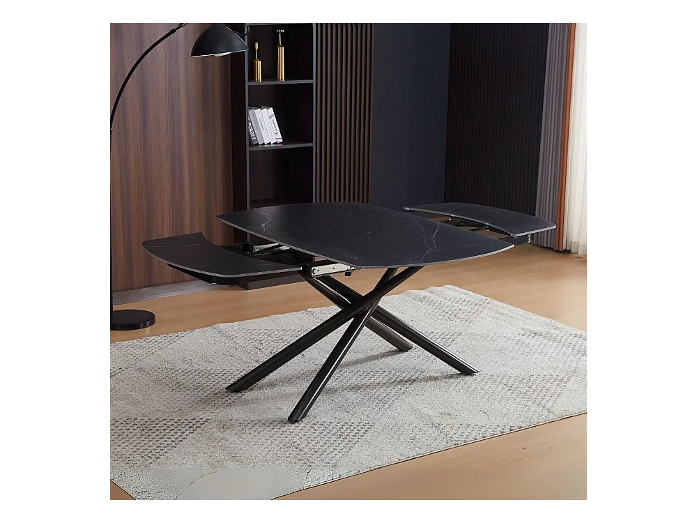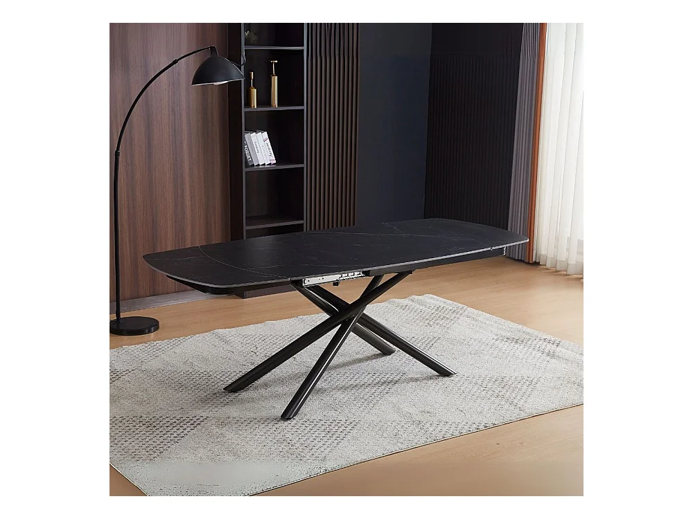Tavolo girevole allungabile piano ceramica effetto marmo nero opaco Astrid 140x90x76H