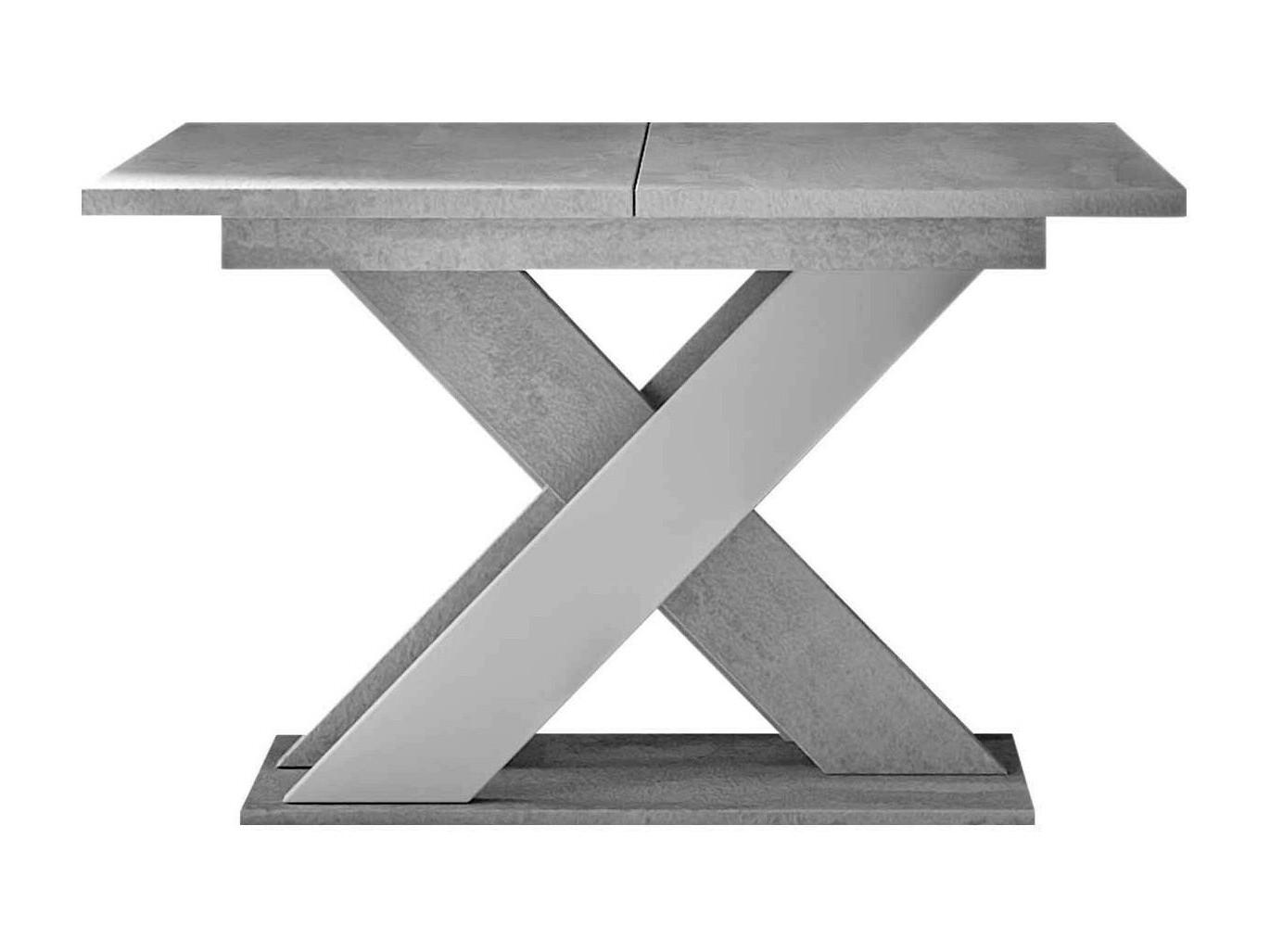 Tavolo da pranzo con gambe incrociate, design moderno, metallo e MDF, grigio cemento e nero, L140 x P80 x H76 cm