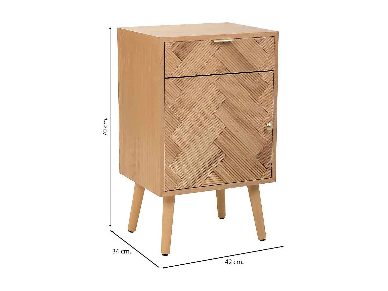 Comodino in legno con 1 cassetto marrone 45x34x64