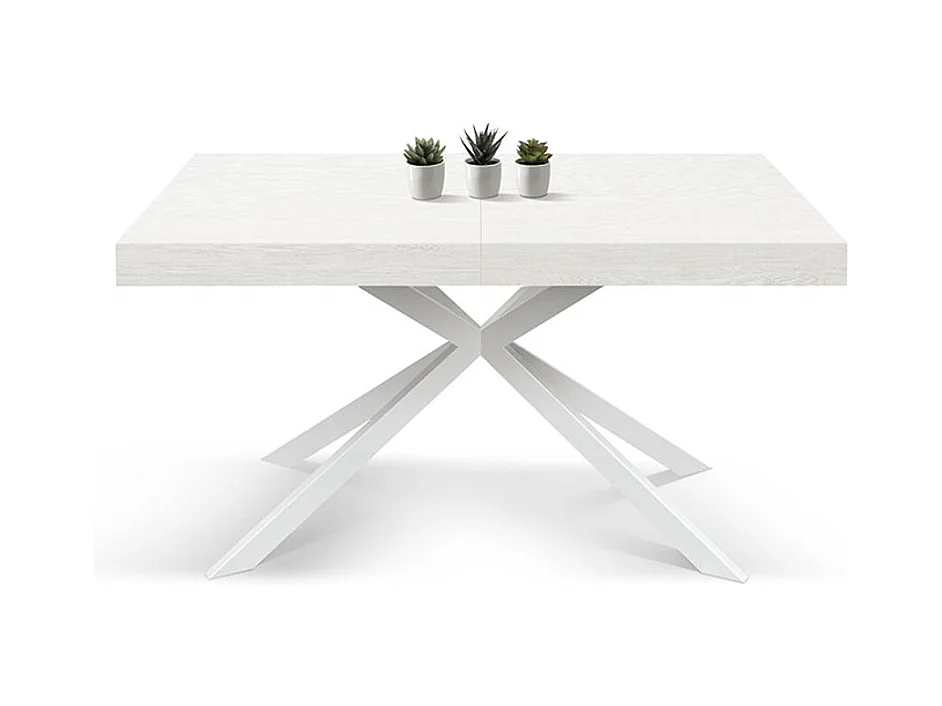 Tavolo in legno, finitura bianco e gambe a X bianche, allungabile 160x90-240x90 - CAMAIORE