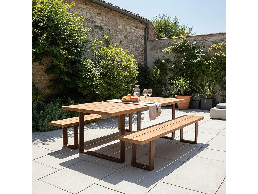Tavolo in Legno Termowood e Acciaio Corten da Esterno/Interno