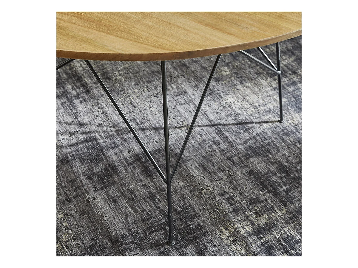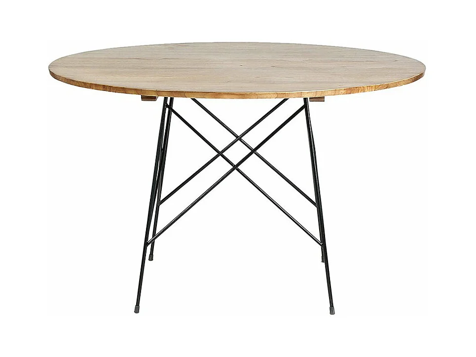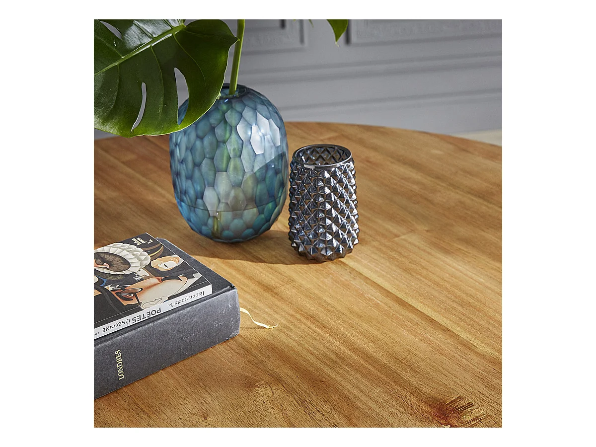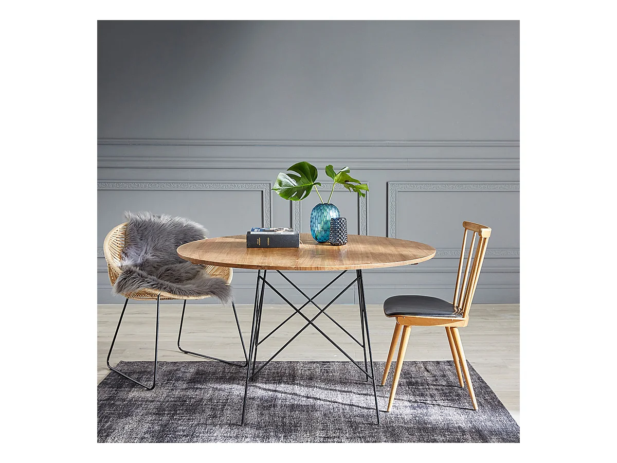 Tavolo da pranzo rotondo in legno di hevea e impiallacciatura di