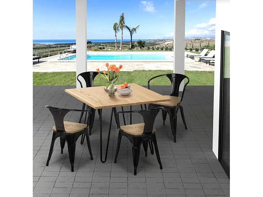 Tavolo industrial in acciaio e legno 80x80 bar e casa Hammer - Beige