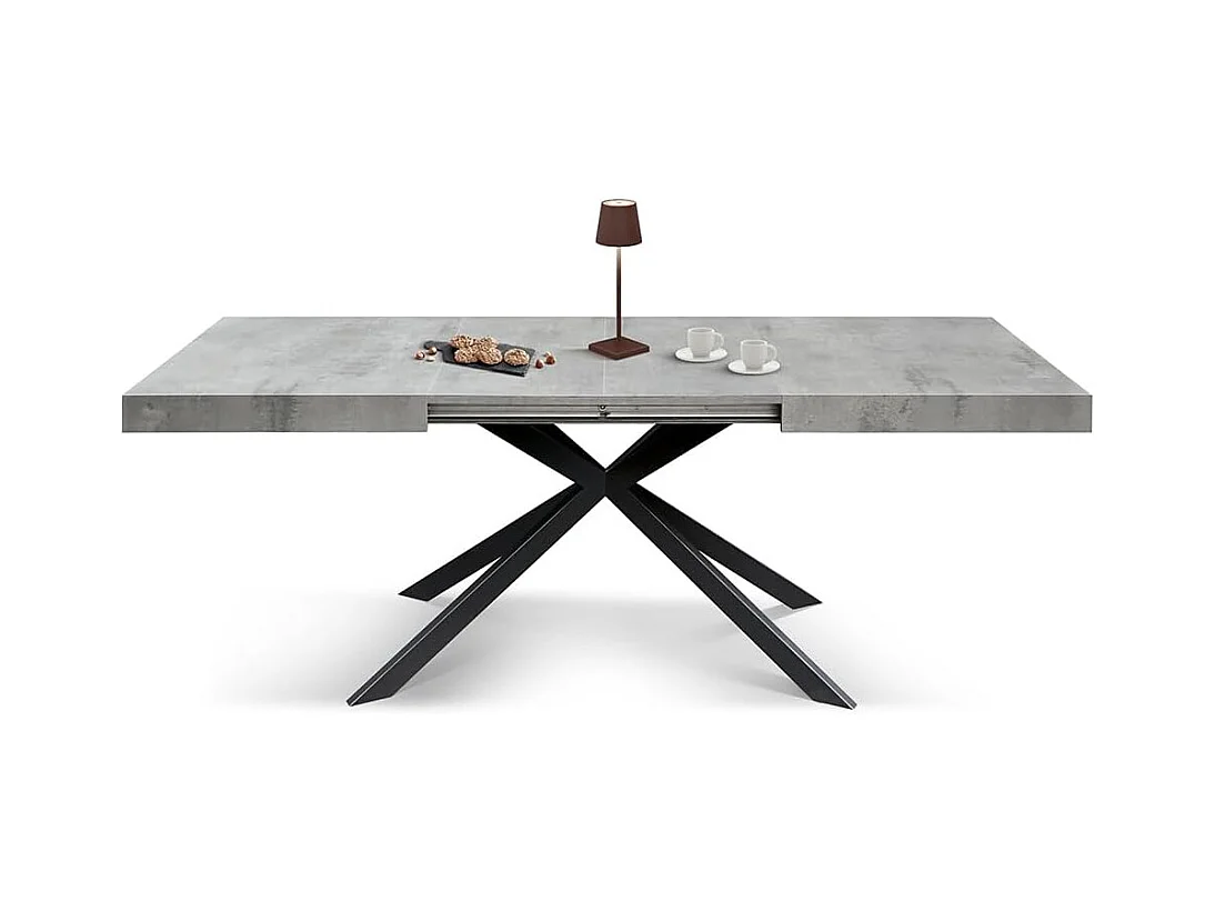 Tavolo legno, finitura cemento,base X antracite, allungabile 160x90 - CAMAIORE
