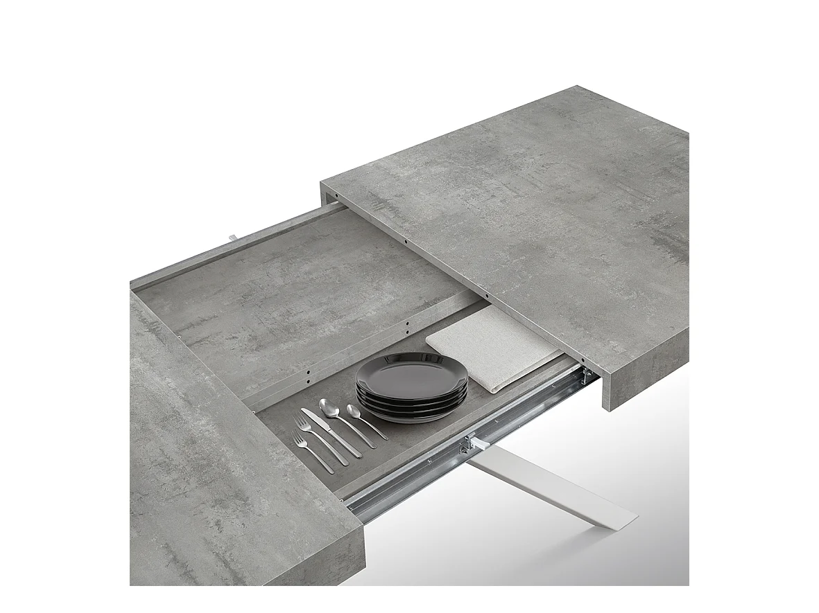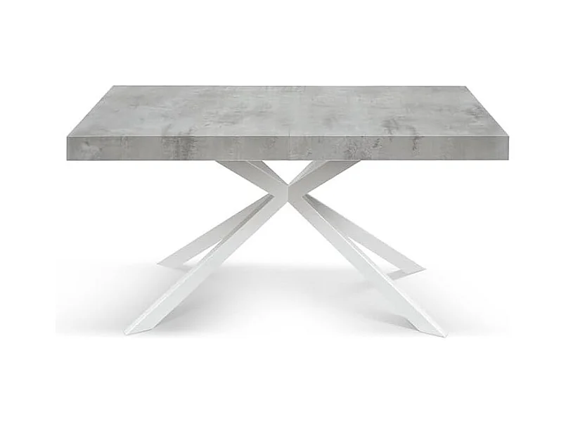Tavolo legno, finitura cemento,base X bianco, allungabile 160x90 - CAMAIORE