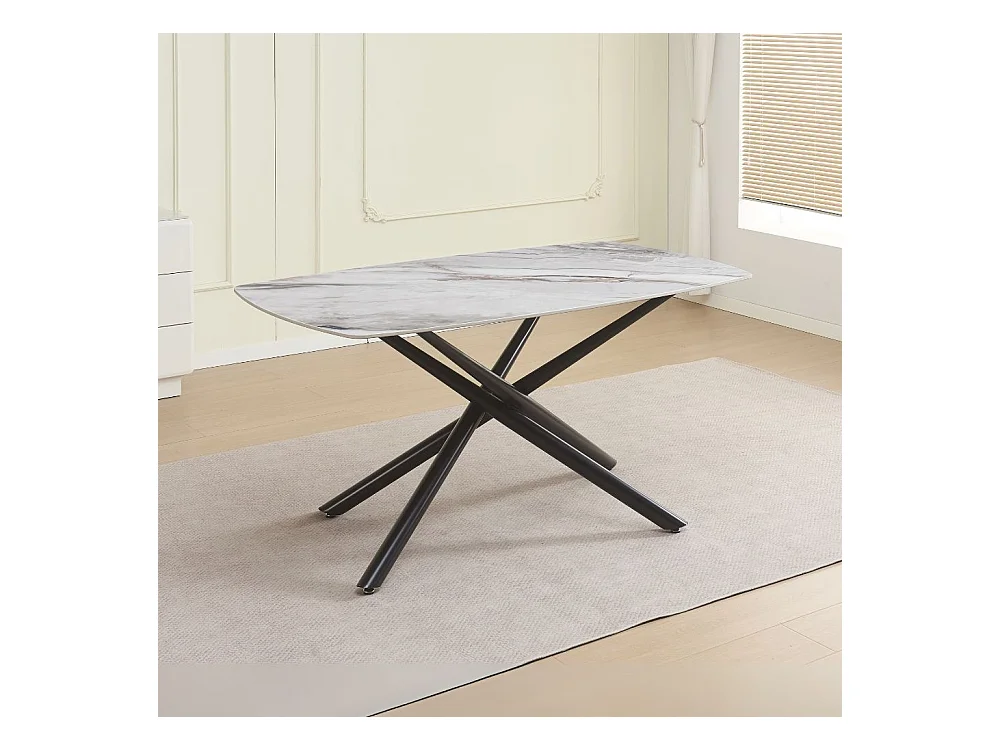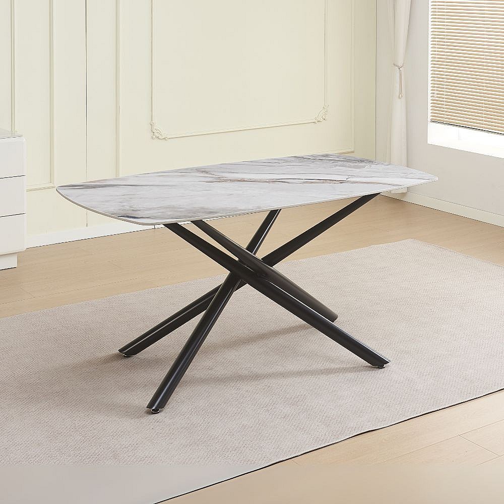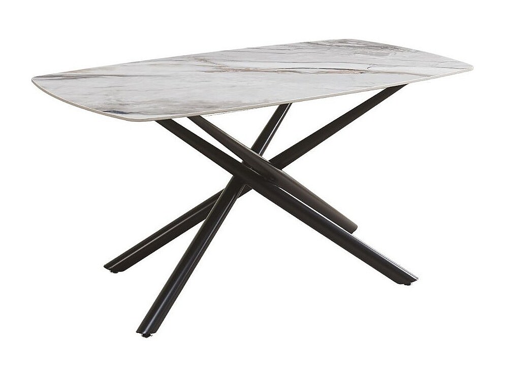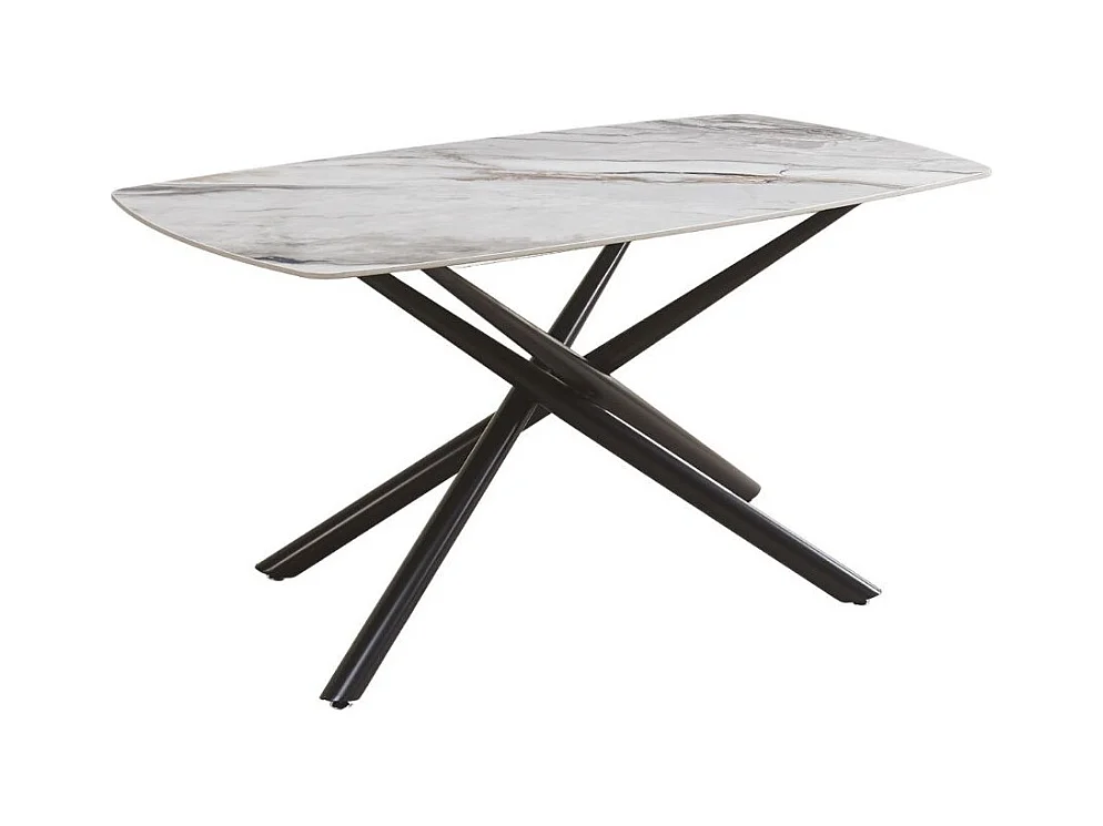 Tavolo Linus con piano in ceramica effetto marmo grigio e gambe in metallo nero 160x90x76H