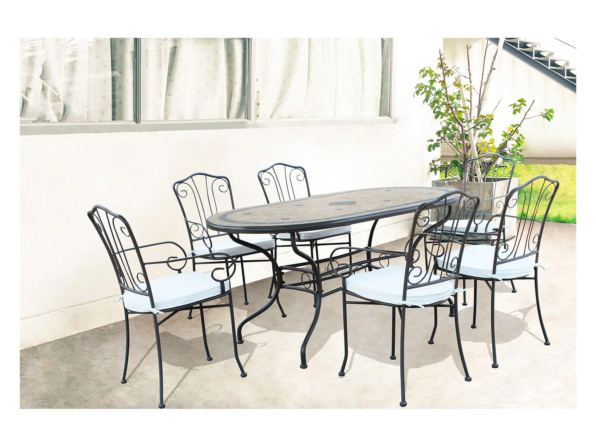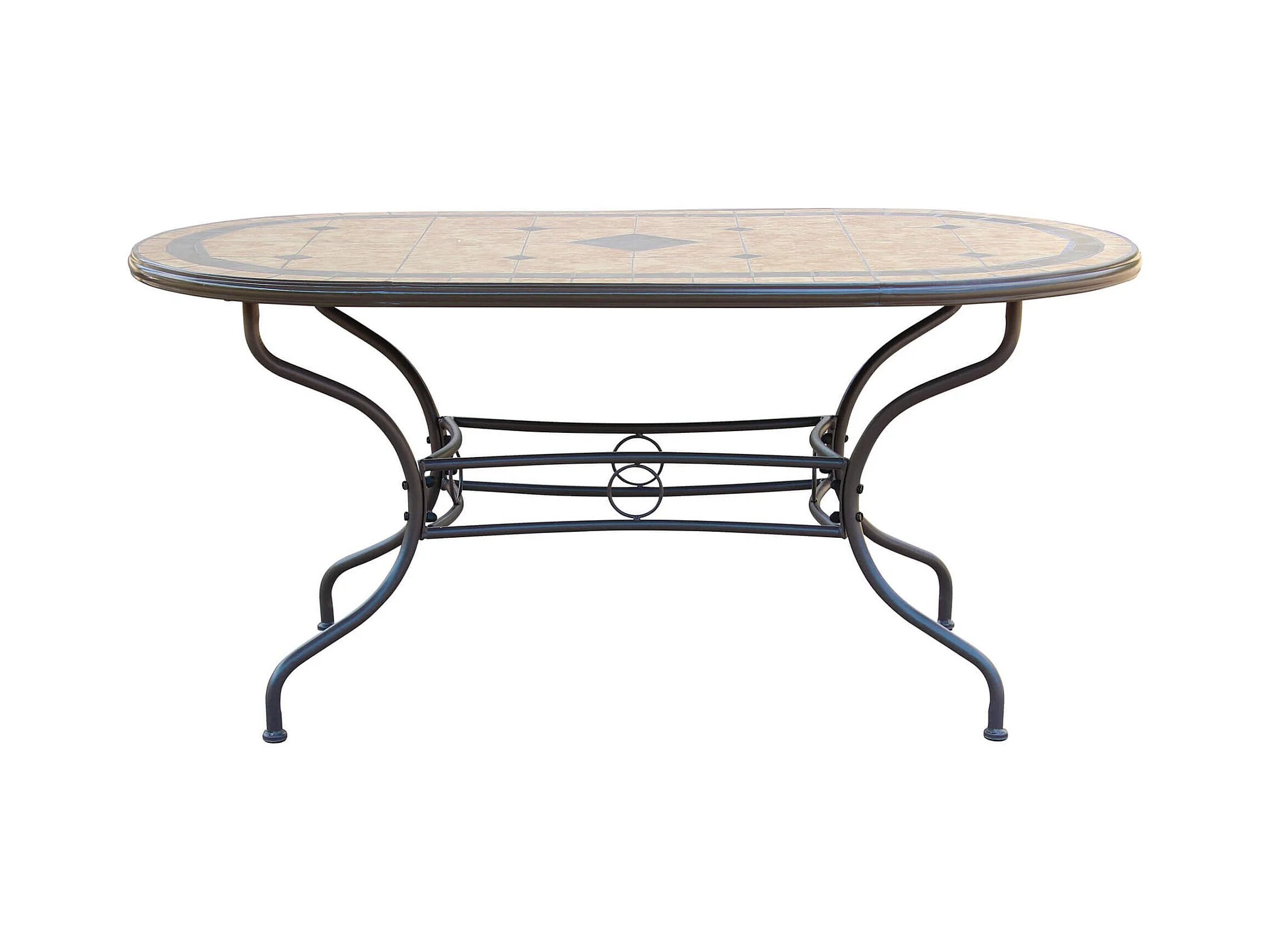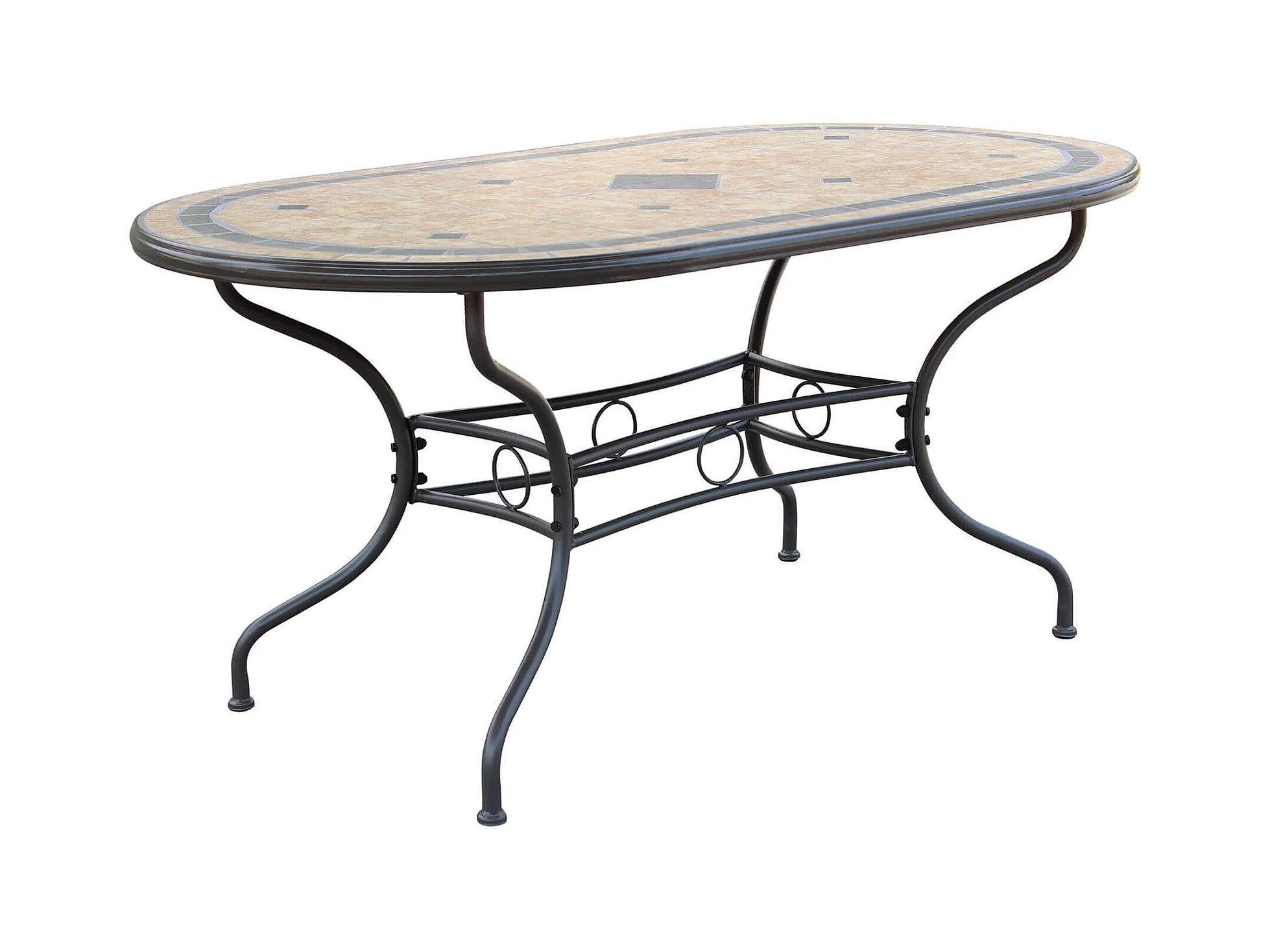 MilaniHome.it - Tavolo Ovale Fisso In Ferro 160x90 Piano In Mosaico Per Esterno Giardino, Portico, Ristorante, Gelateria Bar Hotel Albergodi coloreTaupe
