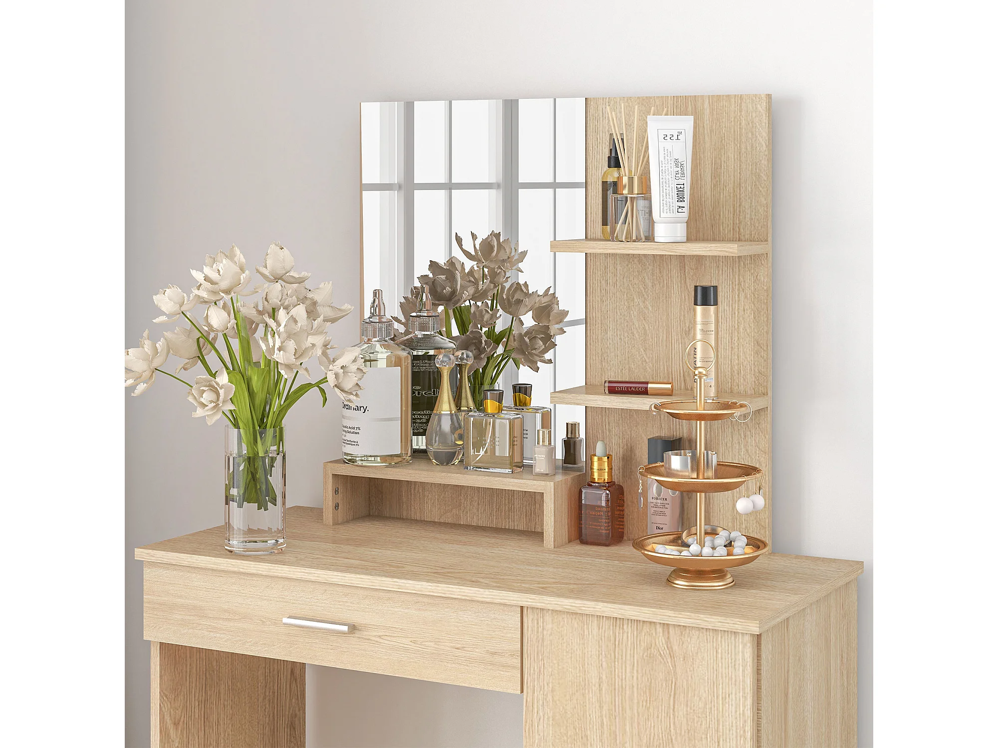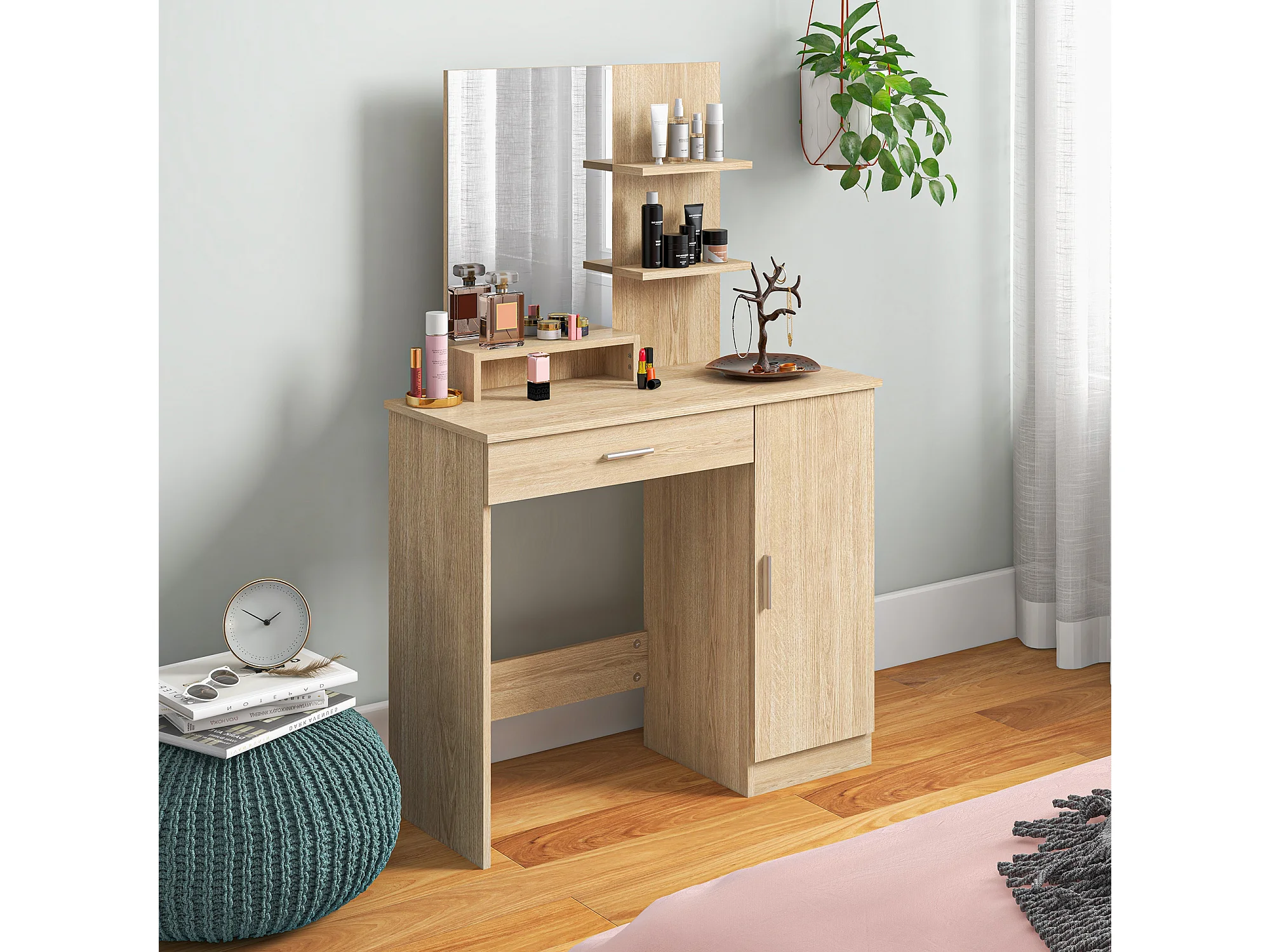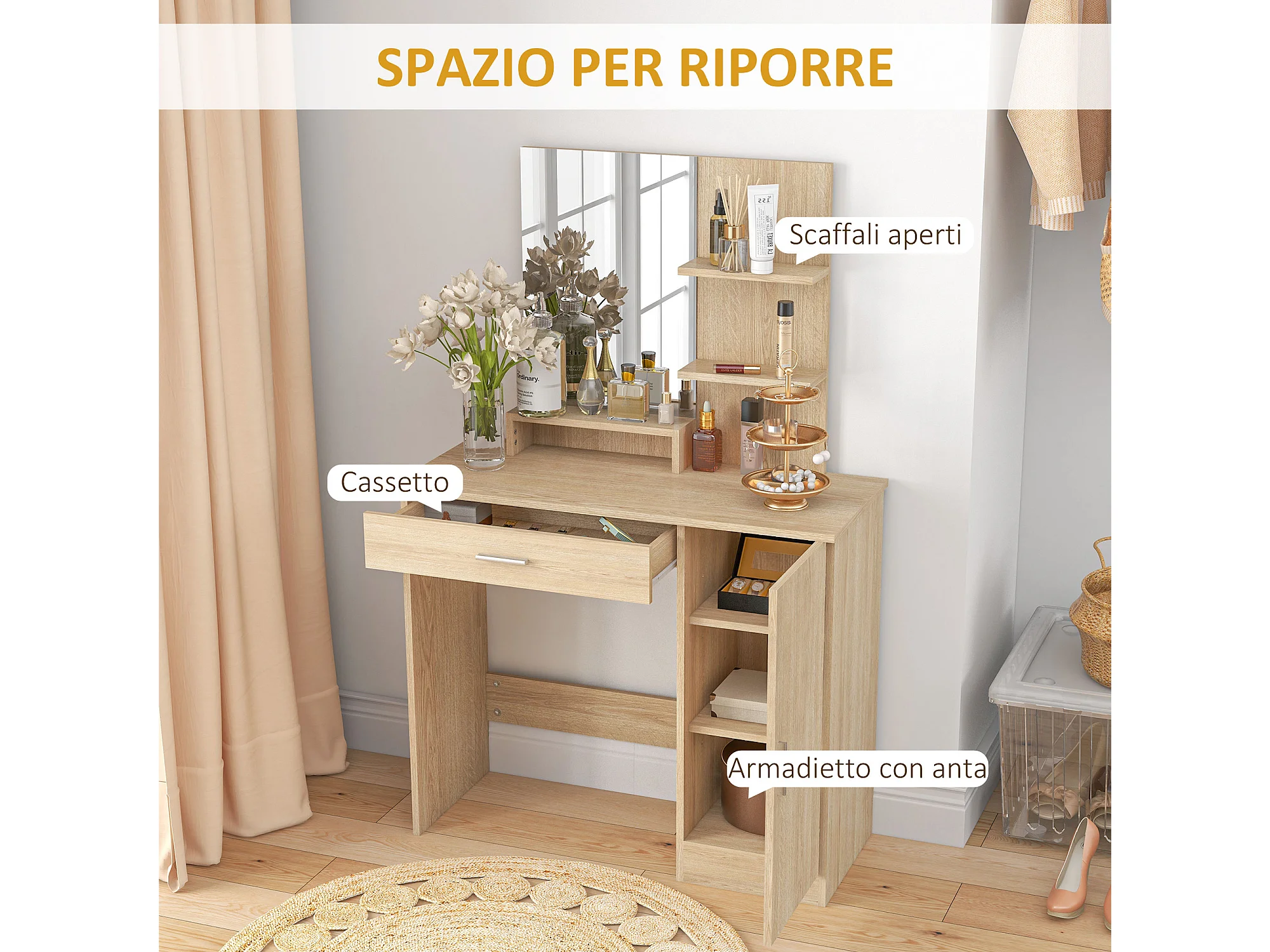 Tavolo per trucco acero con armadietto, cassetto, ripiani e specchio