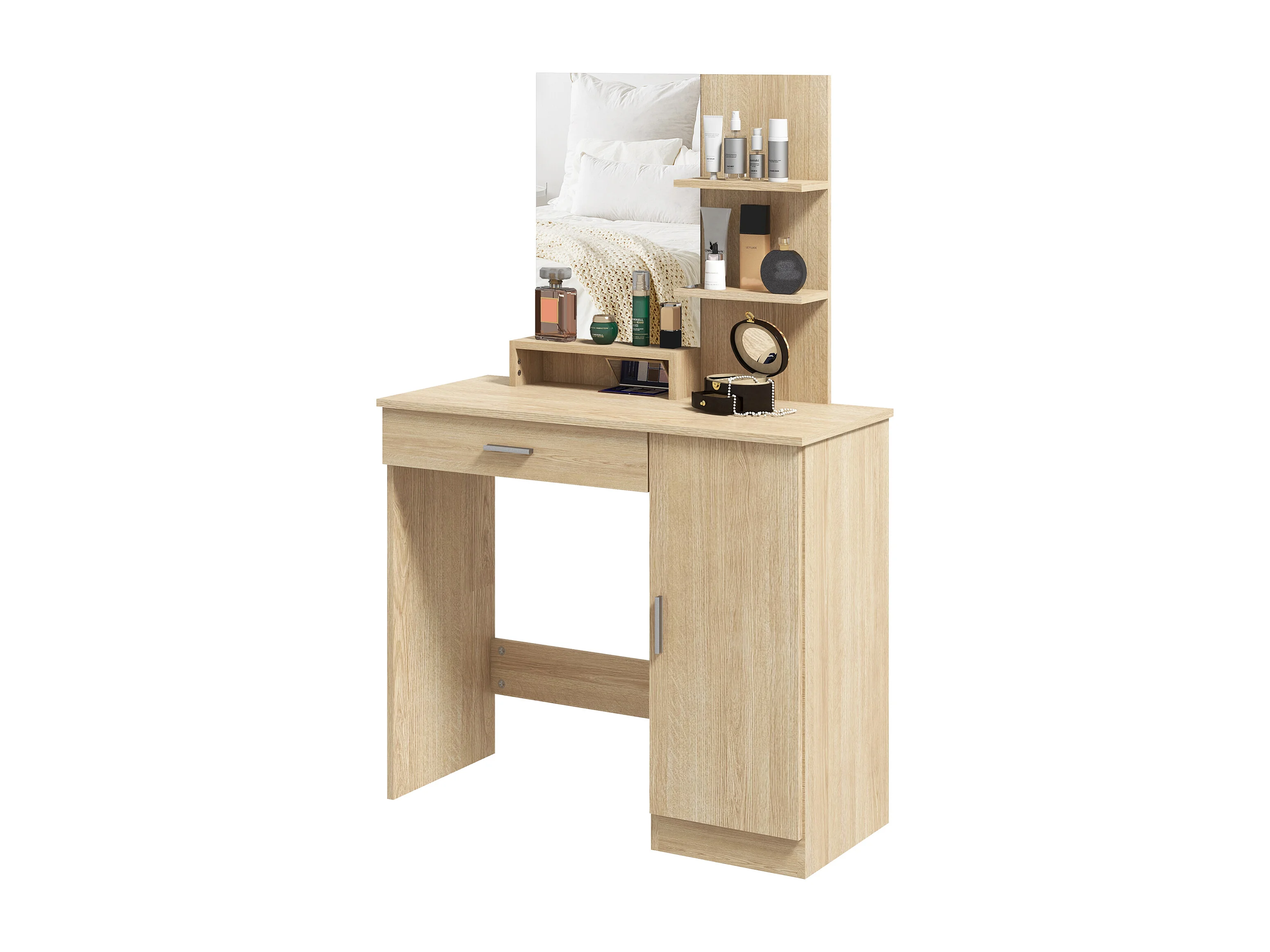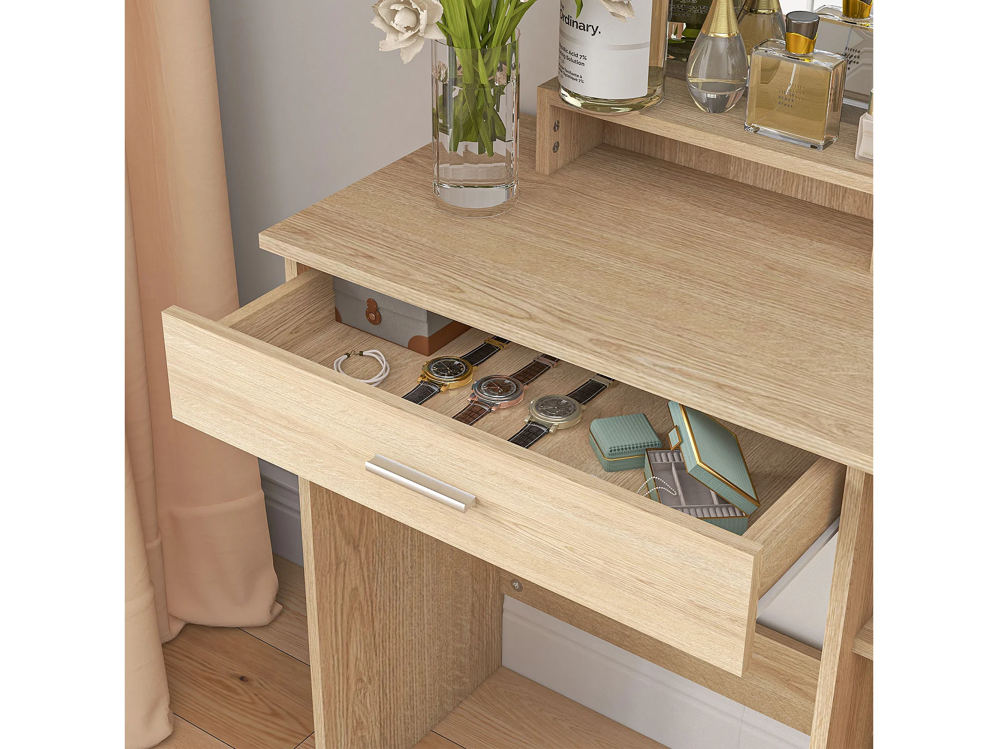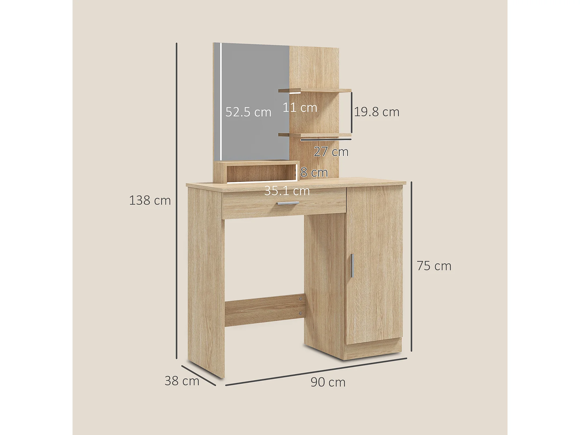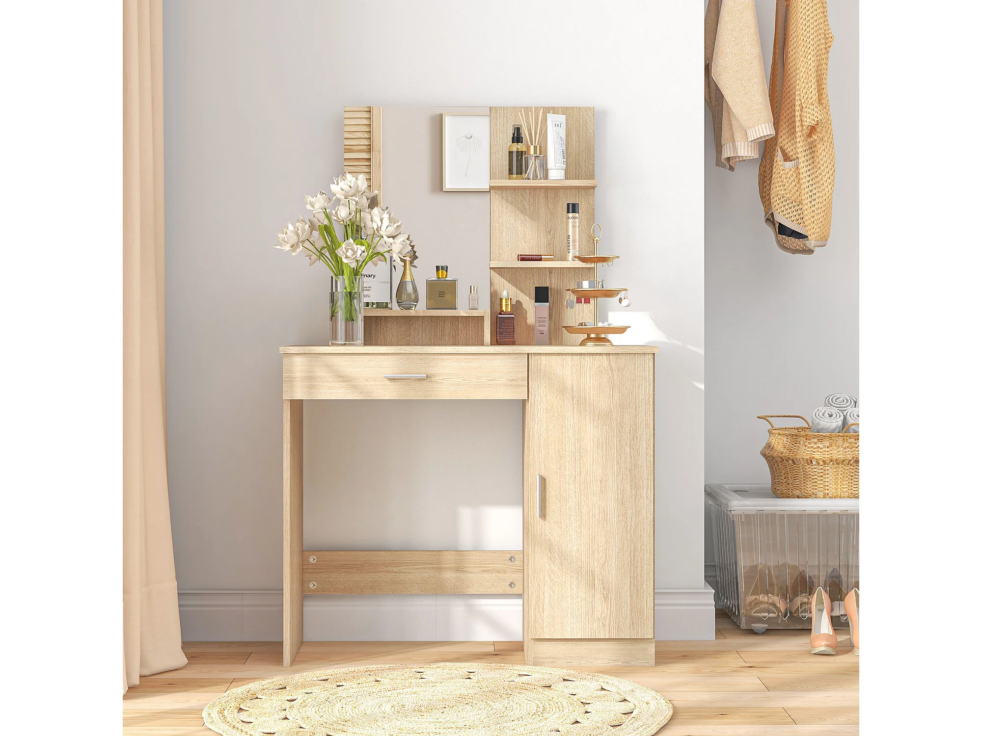Tavolo per trucco acero con armadietto, cassetto, ripiani e specchio
