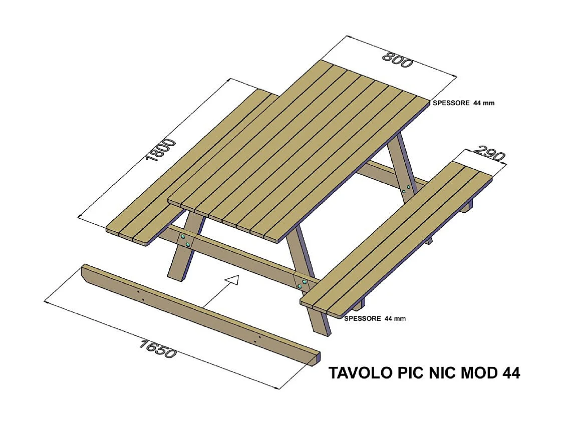 Tavolo Picnic in Legno 44 mm Professionale 180x165 cm