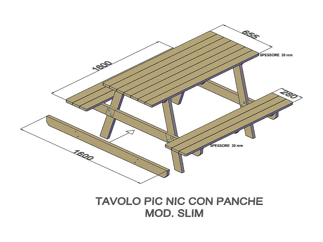 Tavolo Picnic in Legno Slim 160x160 cm - Pino Impregnato