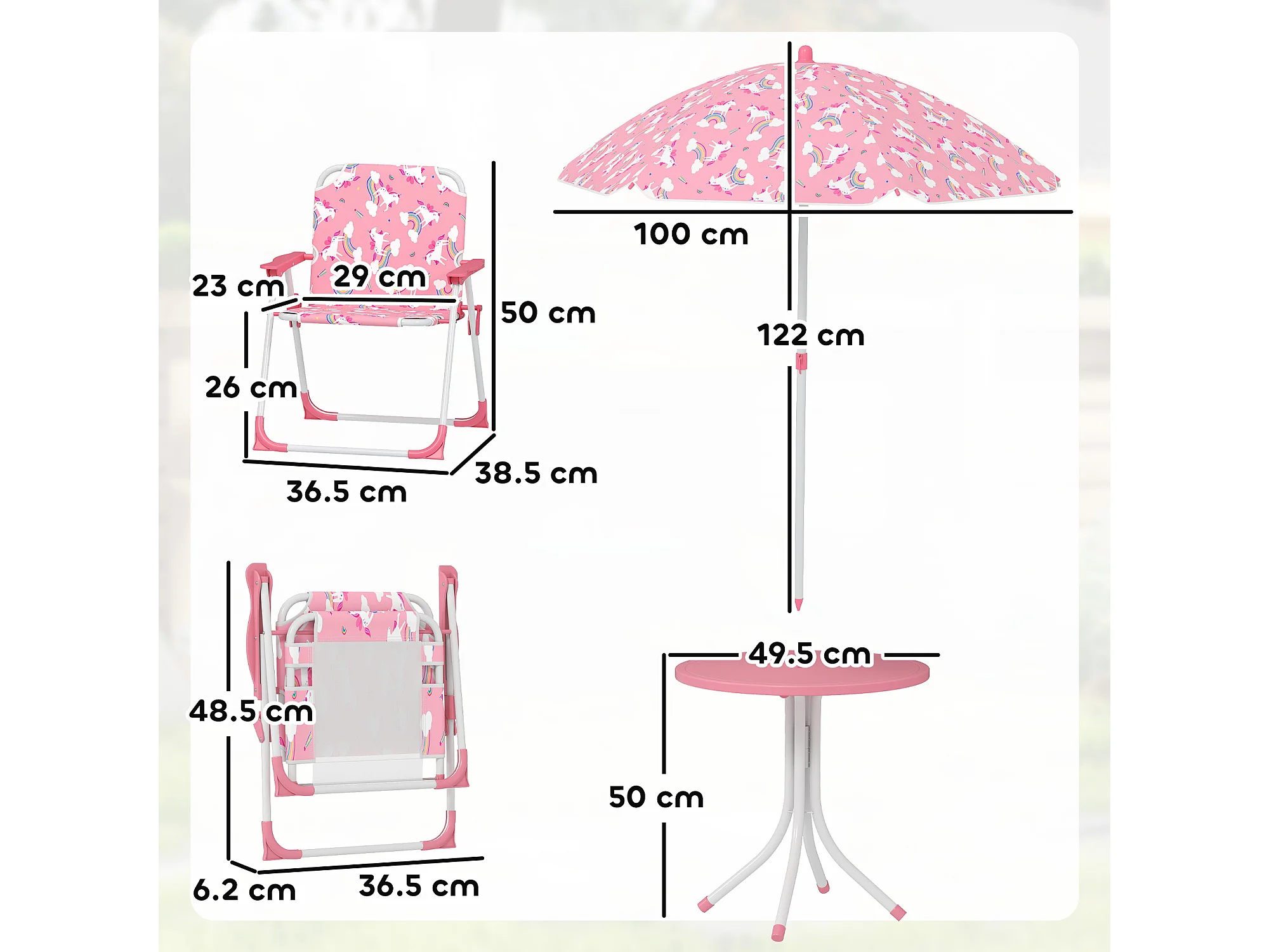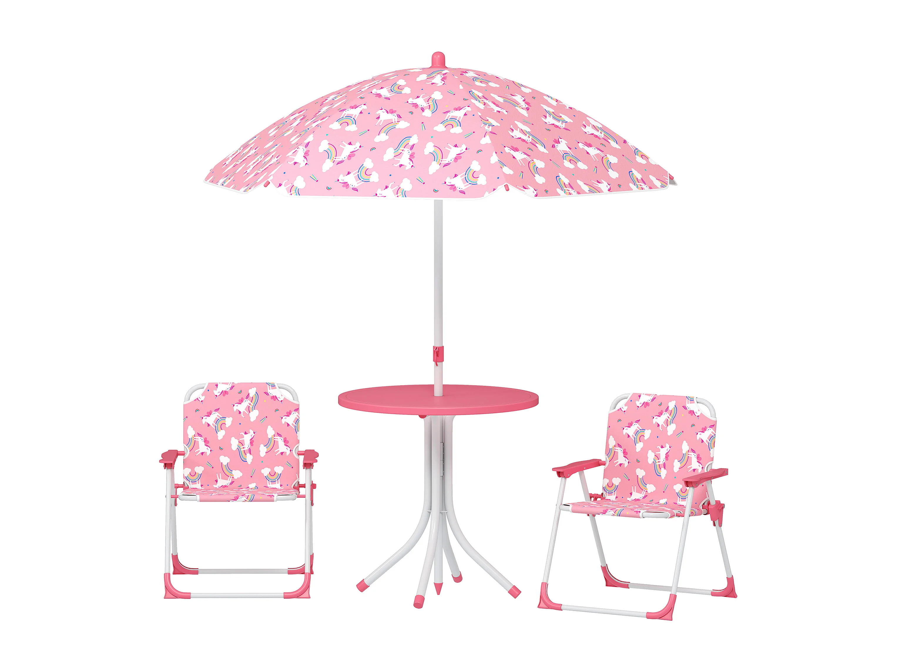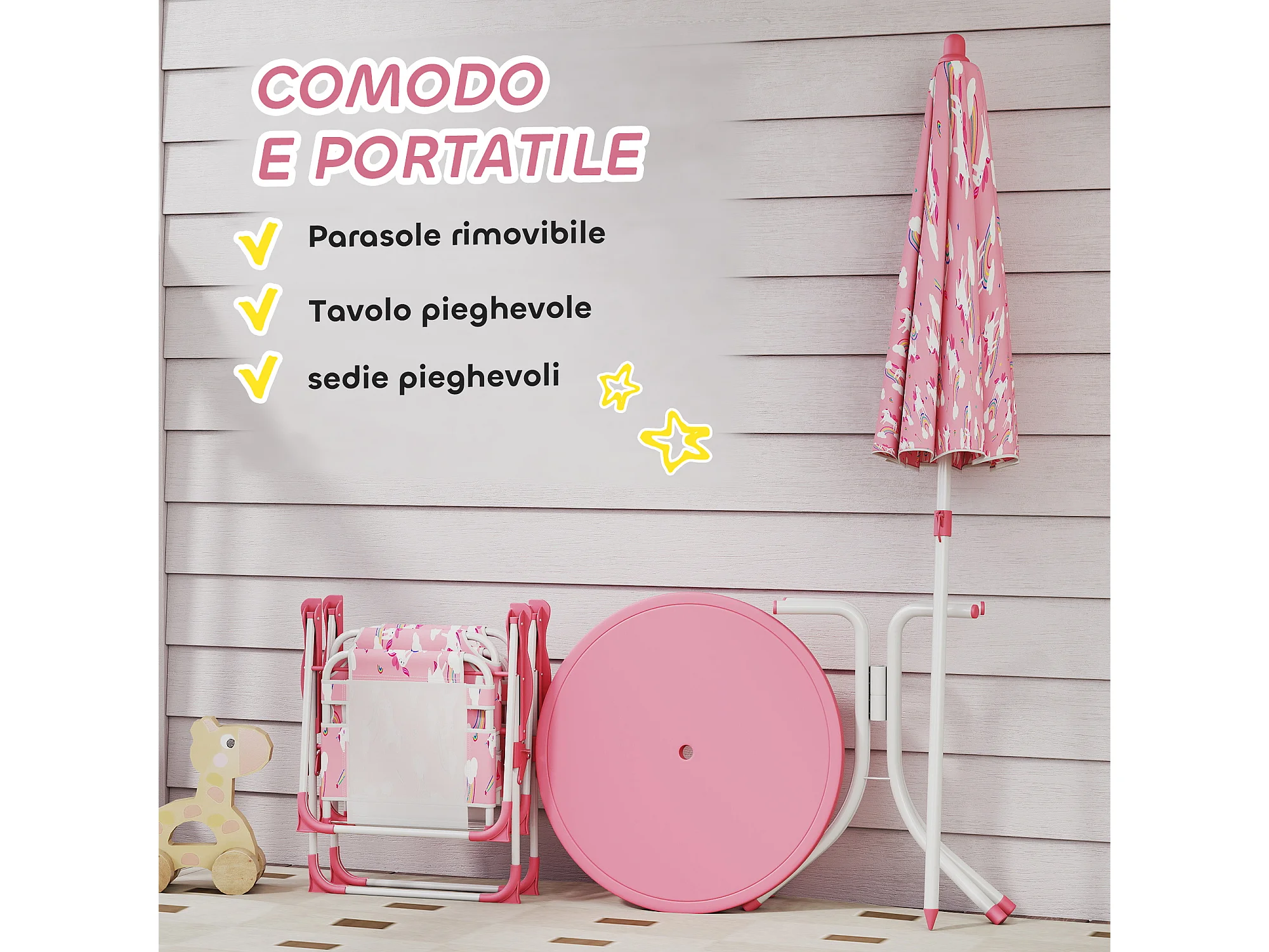 Tavolo picnic per bambini con ombrellone removibile tema giungla rosa