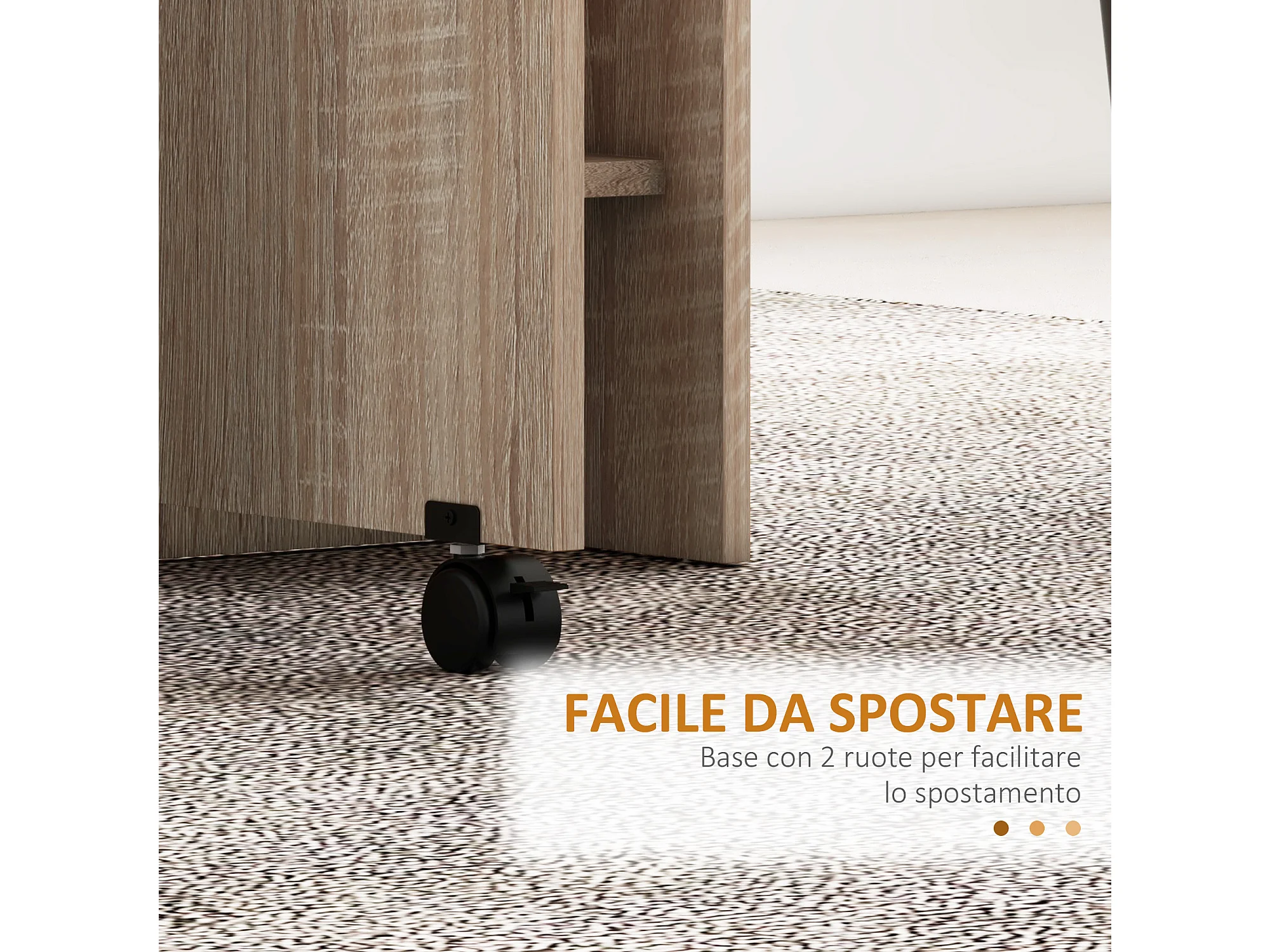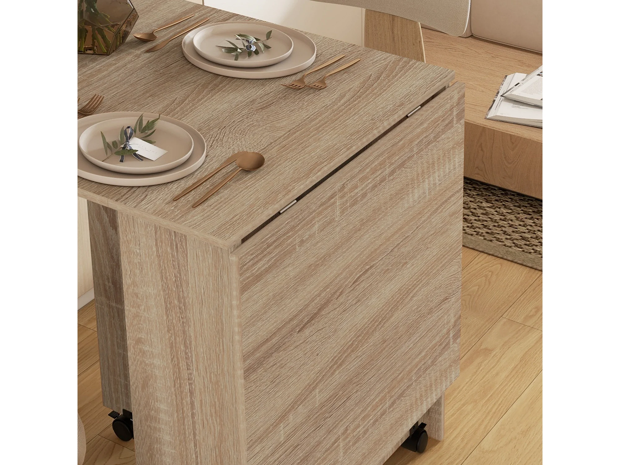 Tavolo pieghevole multiuso con ruote e 2 ribalte colore legno