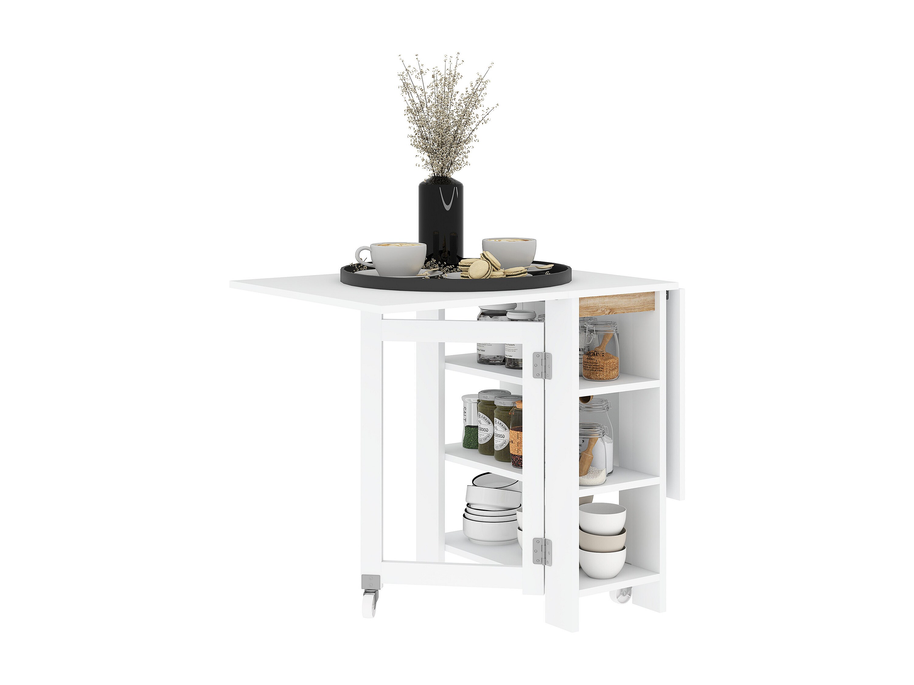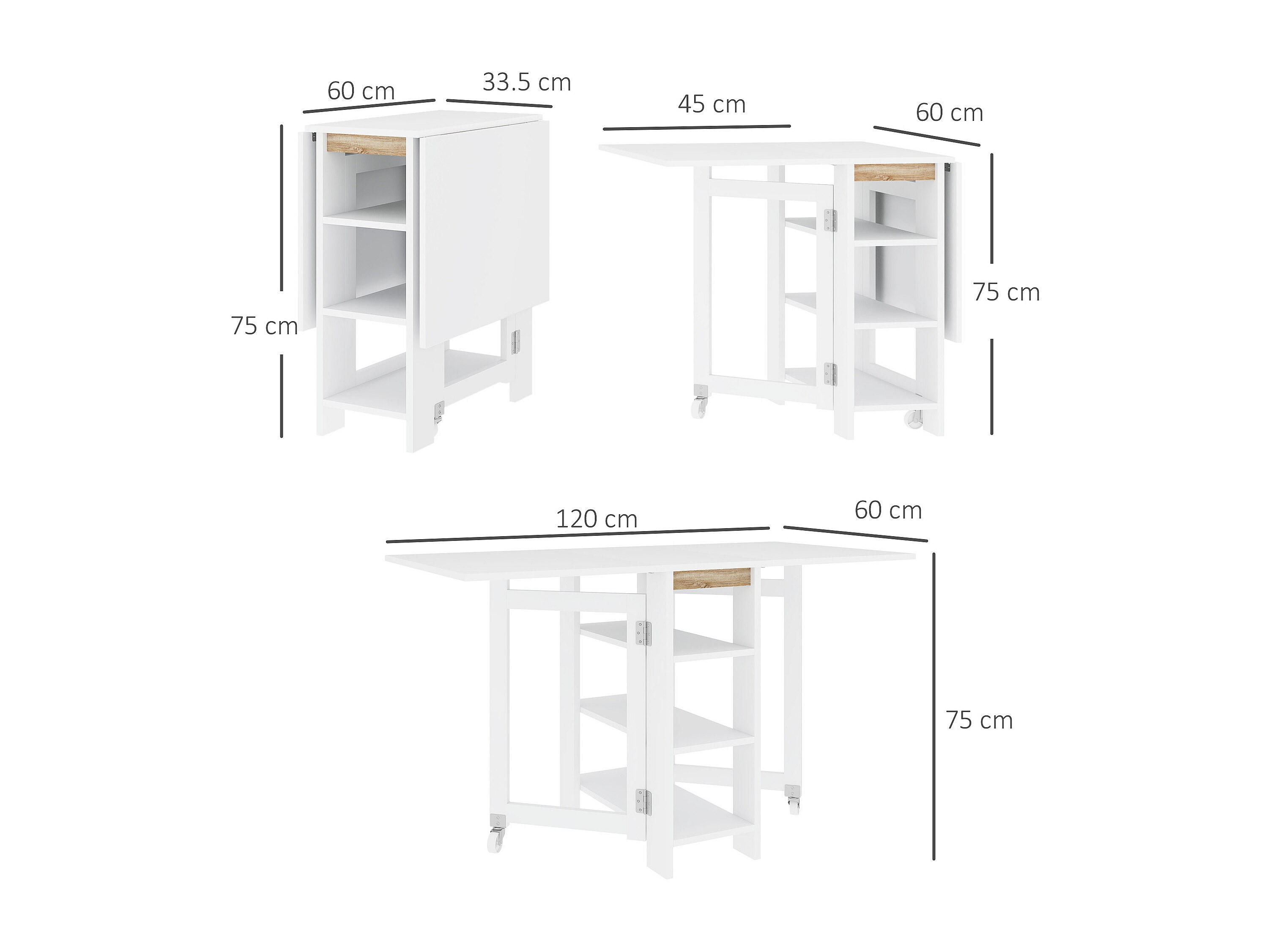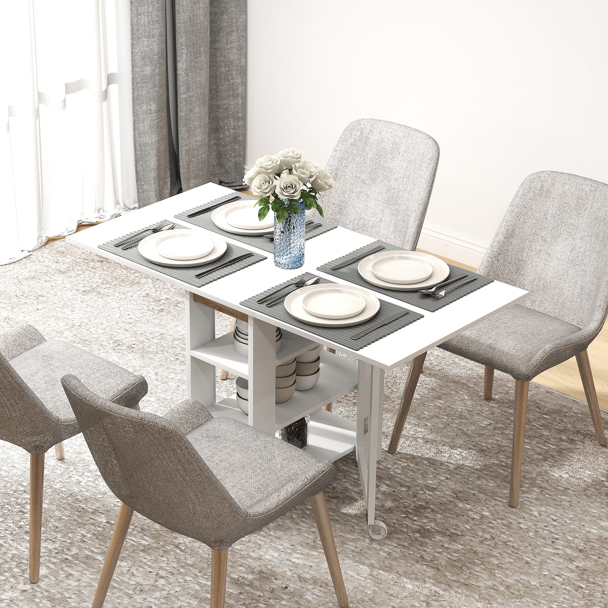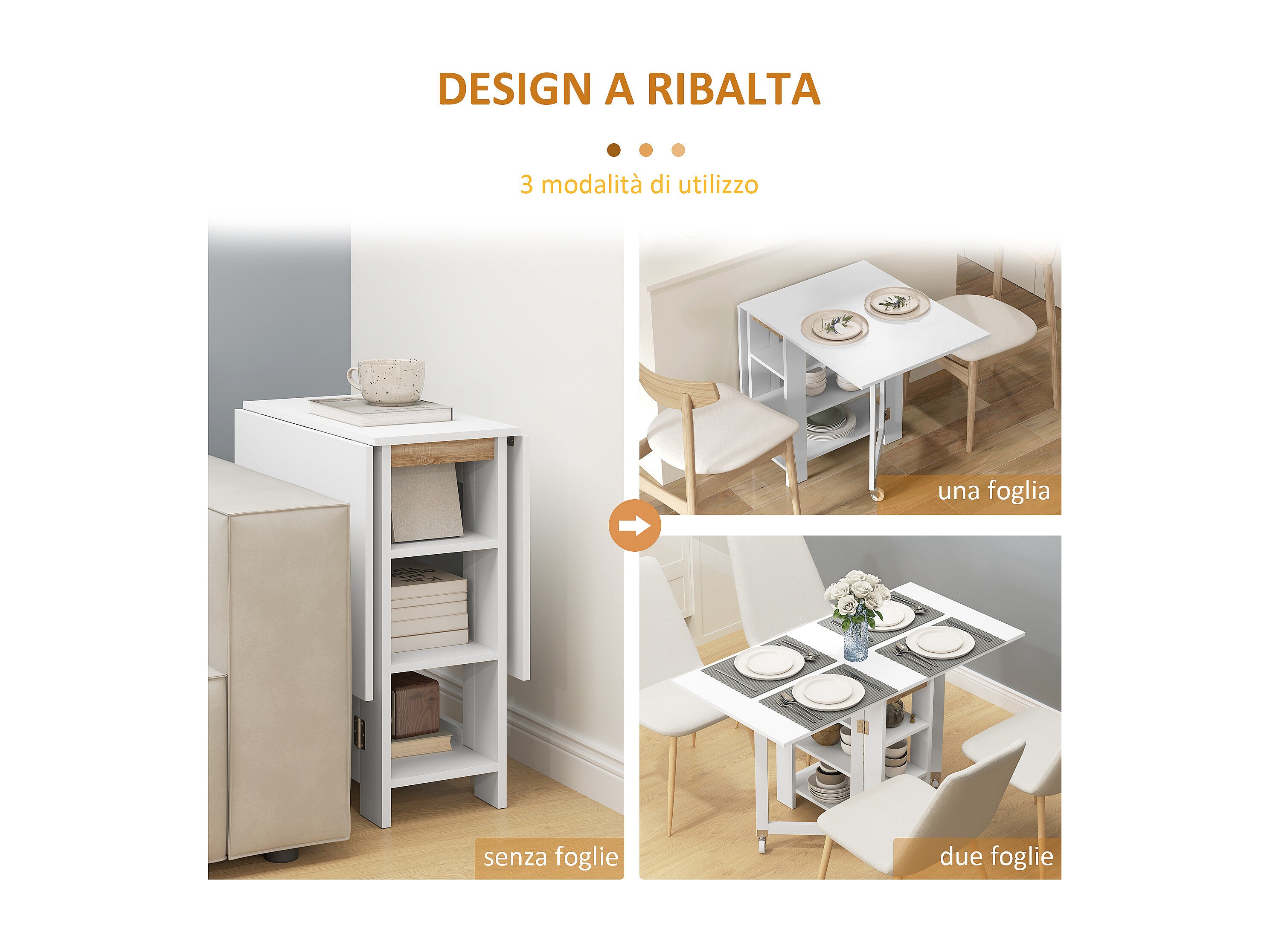 Tavolo pieghevole a 2 ribalte per 4 persone d ripiani bianco