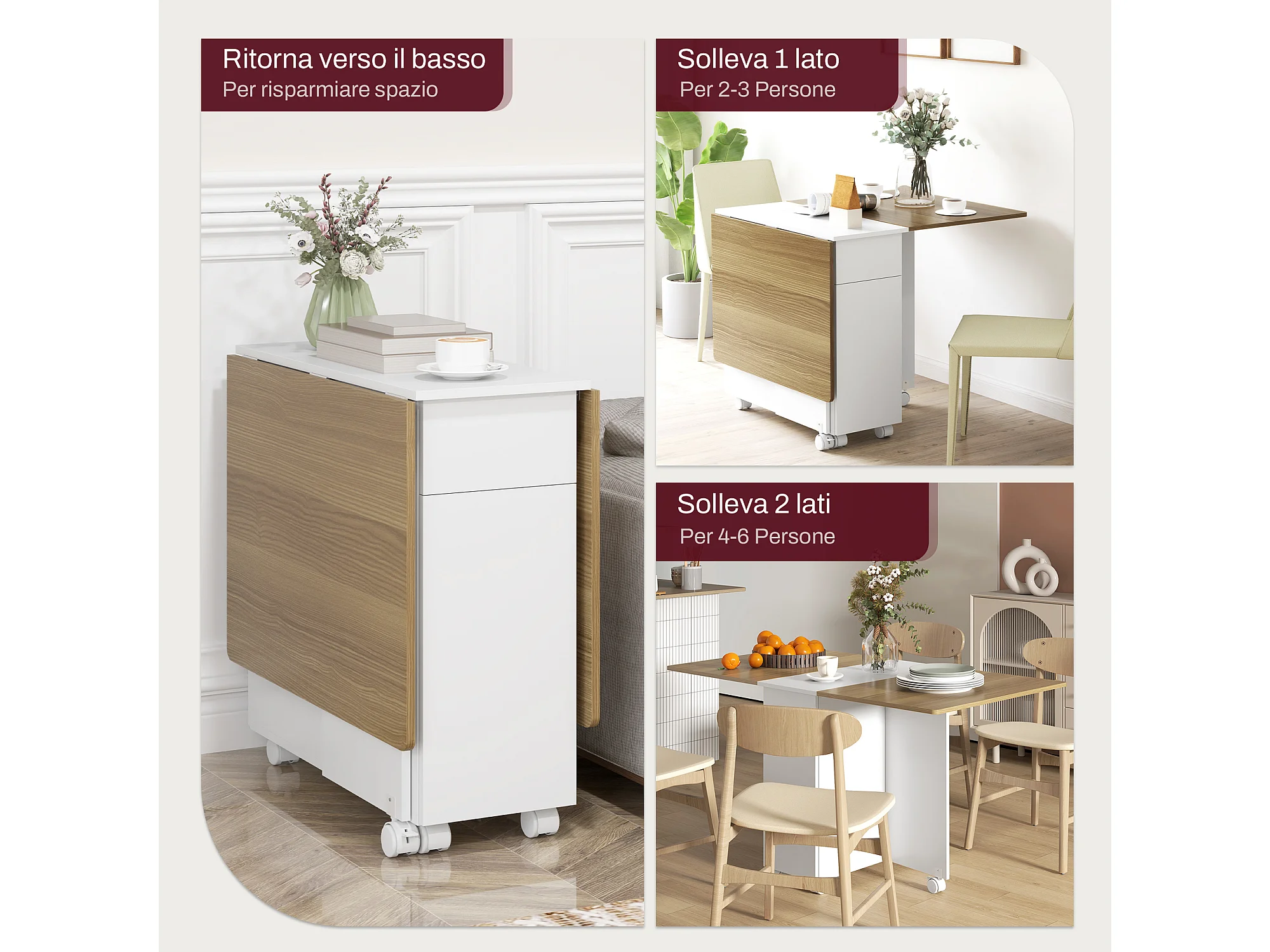 Tavolo da pranzo pieghevole tavolo cucina a ribalta con ruote a freno per 6 persone