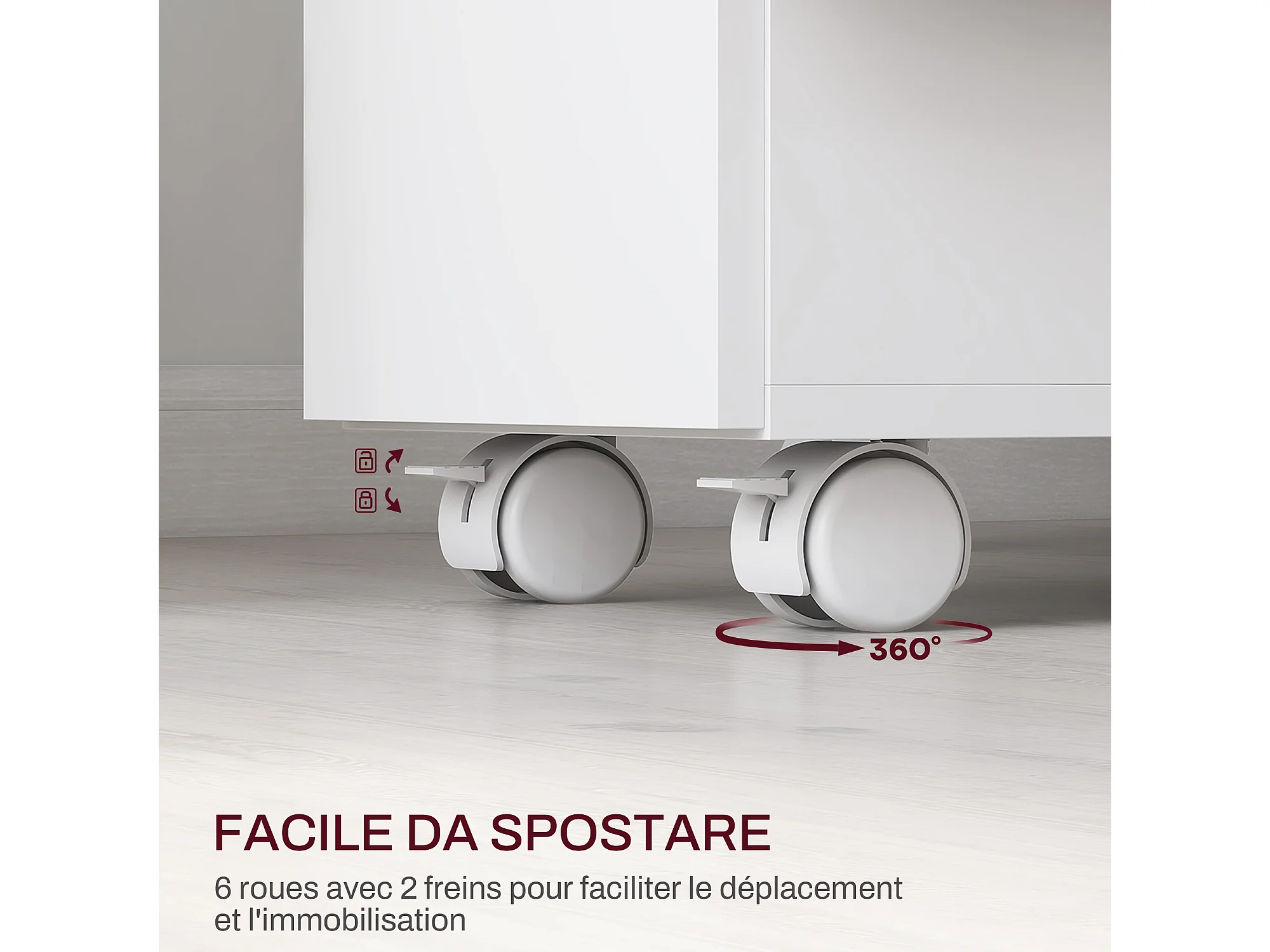 Tavolo pieghevole a 2 ribalte per 6 persone con ripiani e ruote bianco