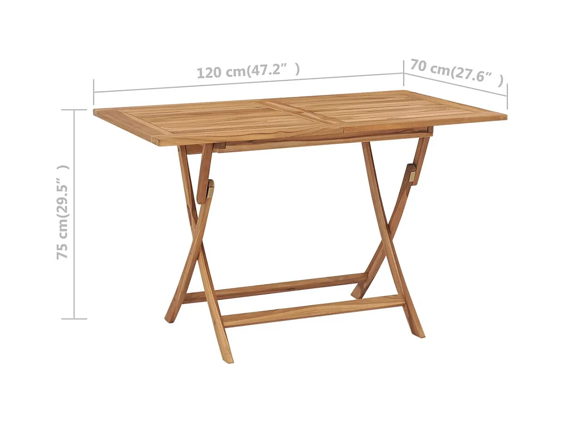 Tavolo Pieghevole da Giardino 120x70x75 cm in Massello di Teak