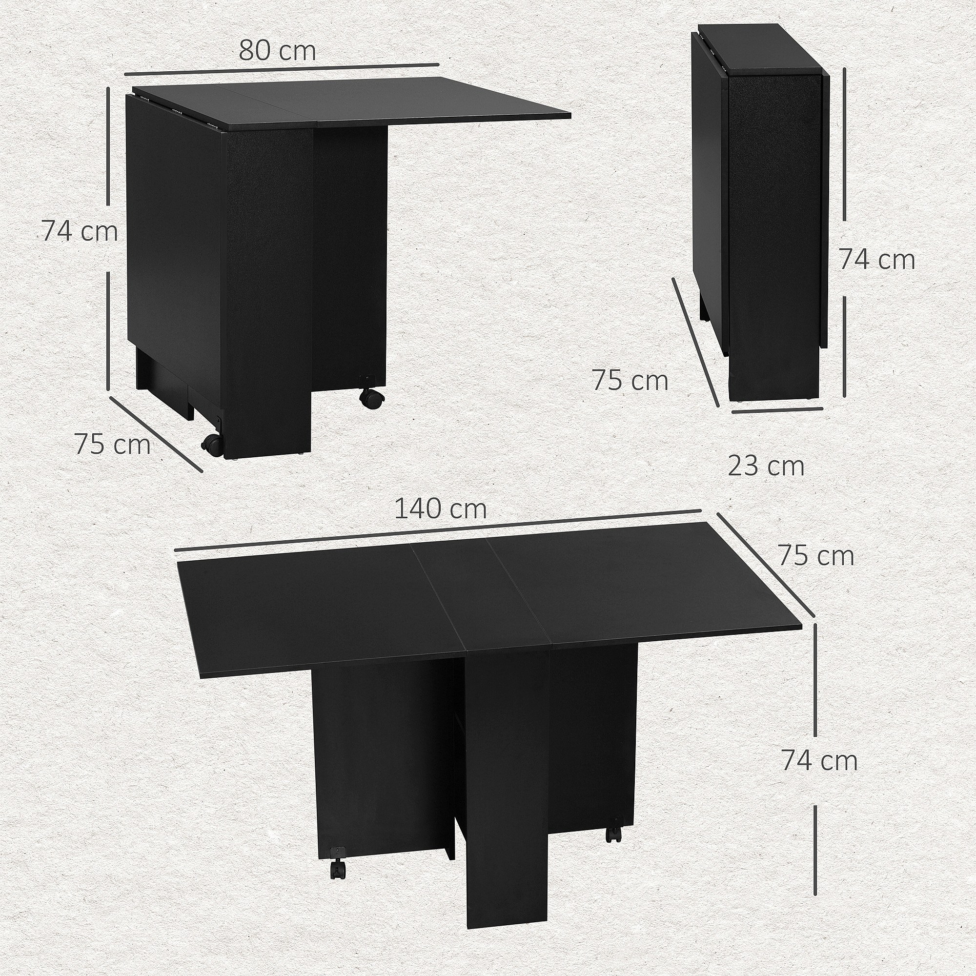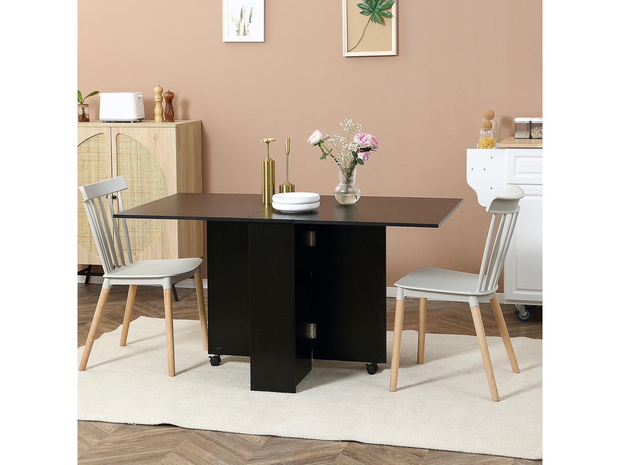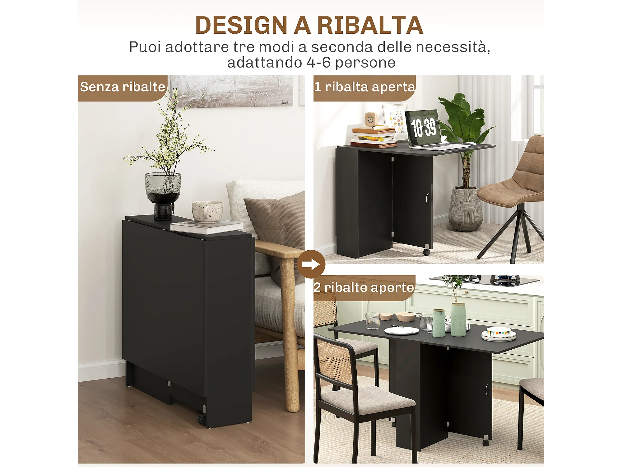 Tavolo pieghevole in legno con ruote per 4-6 persone nero