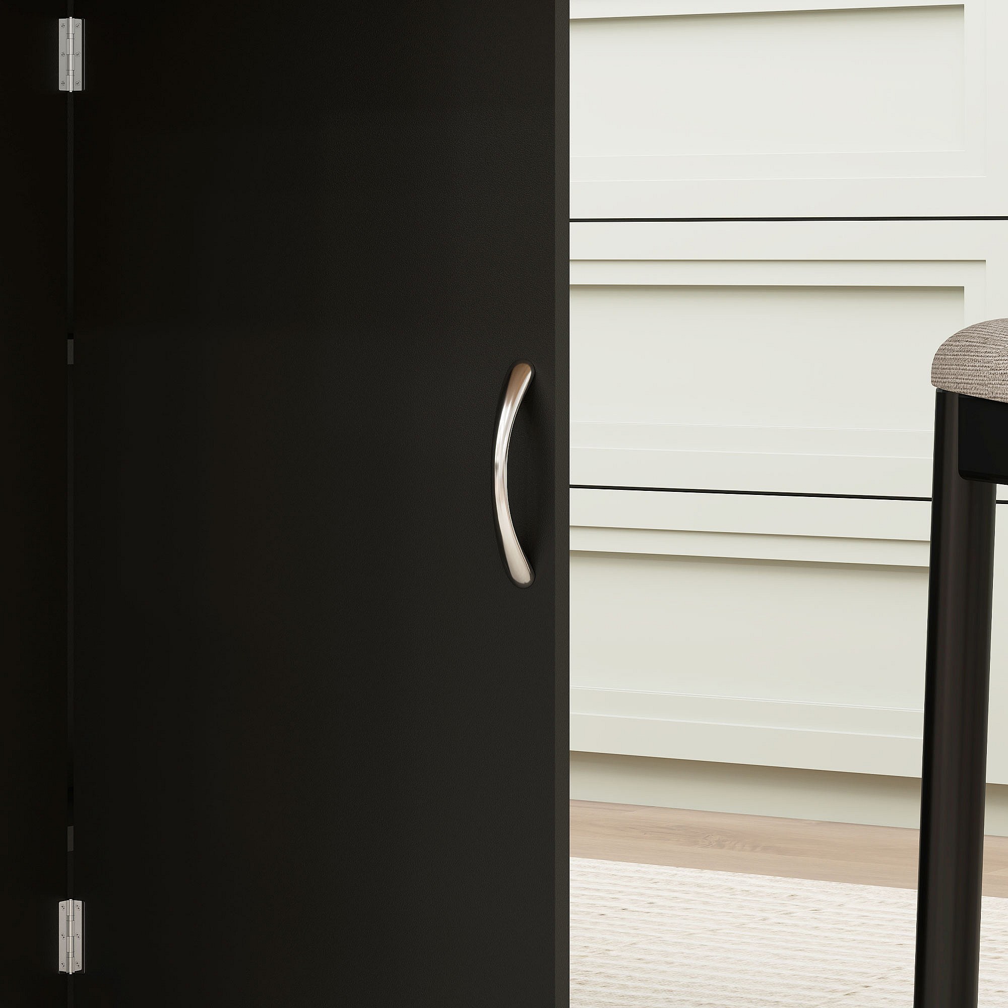 Sedia Polo nera in ecopelle e legno di noce