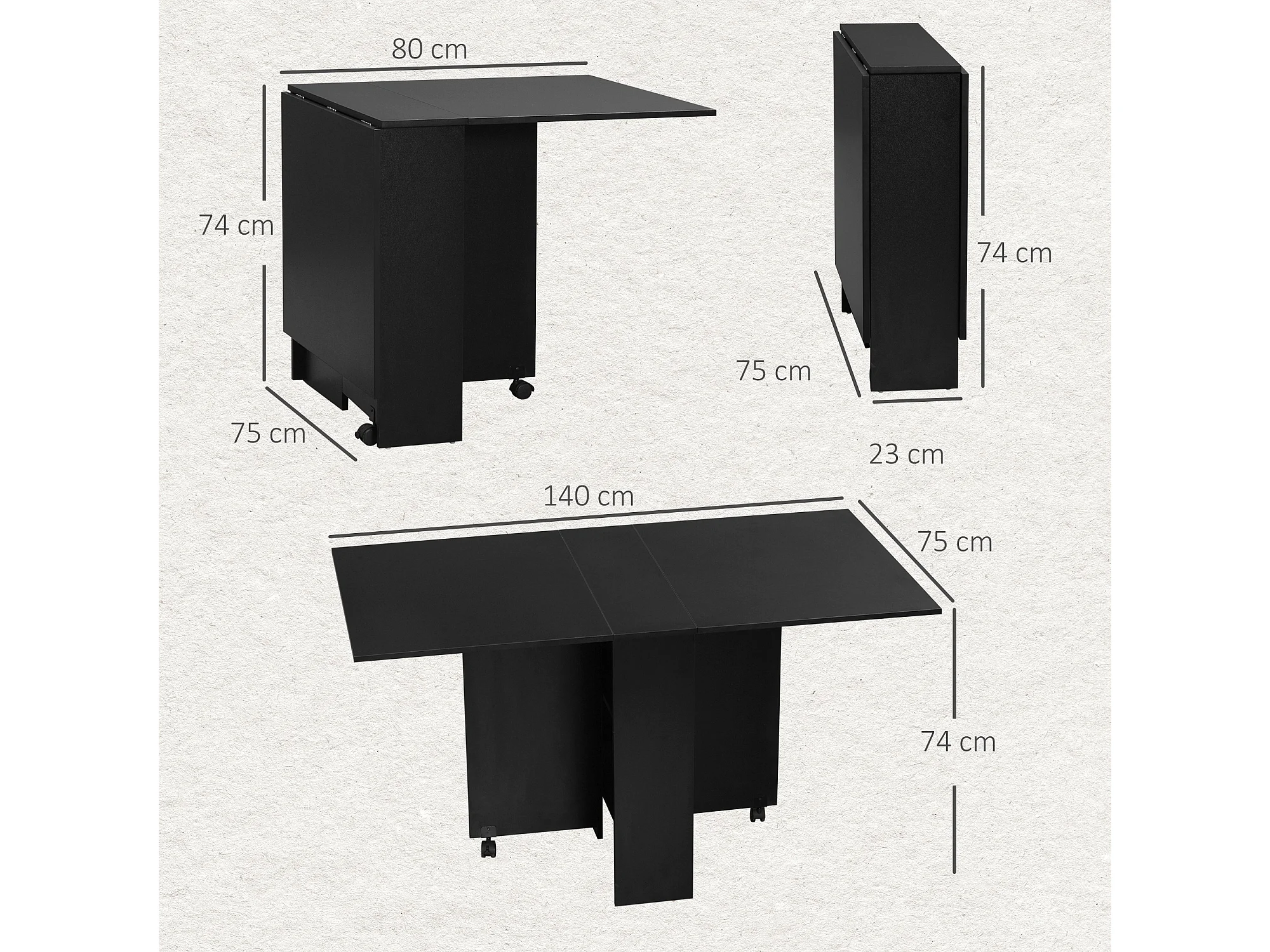 Tavolo da pranzo pieghevole per 4 - 6 persone - 110-140 x 80 x 75 cm - allungabile - con 1 anta - MDF - nero