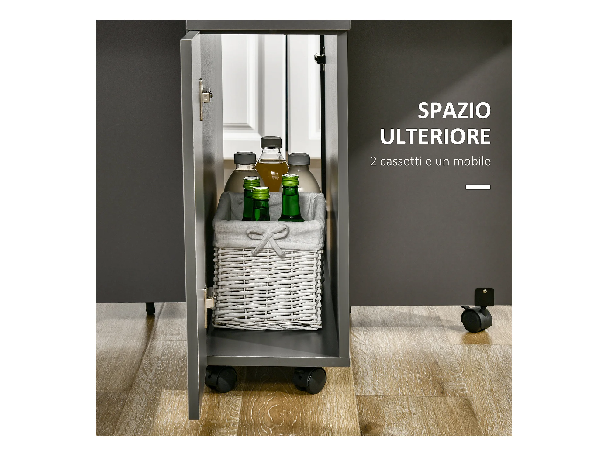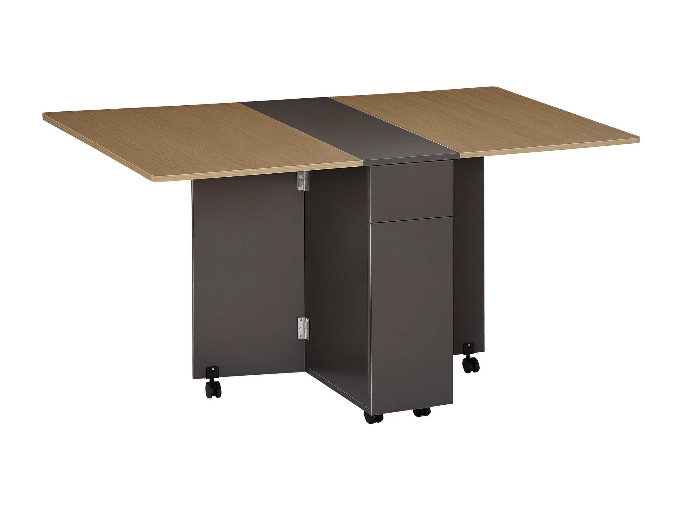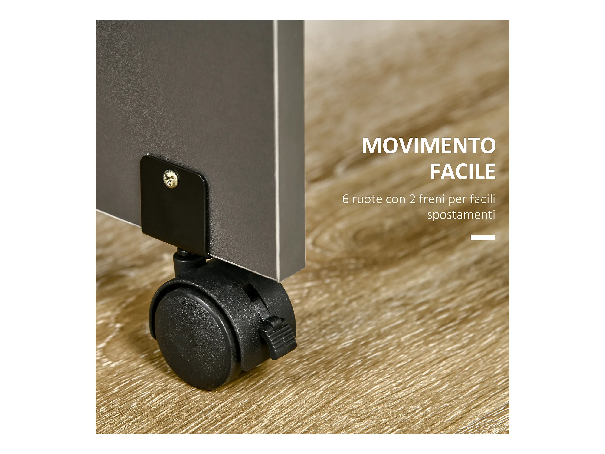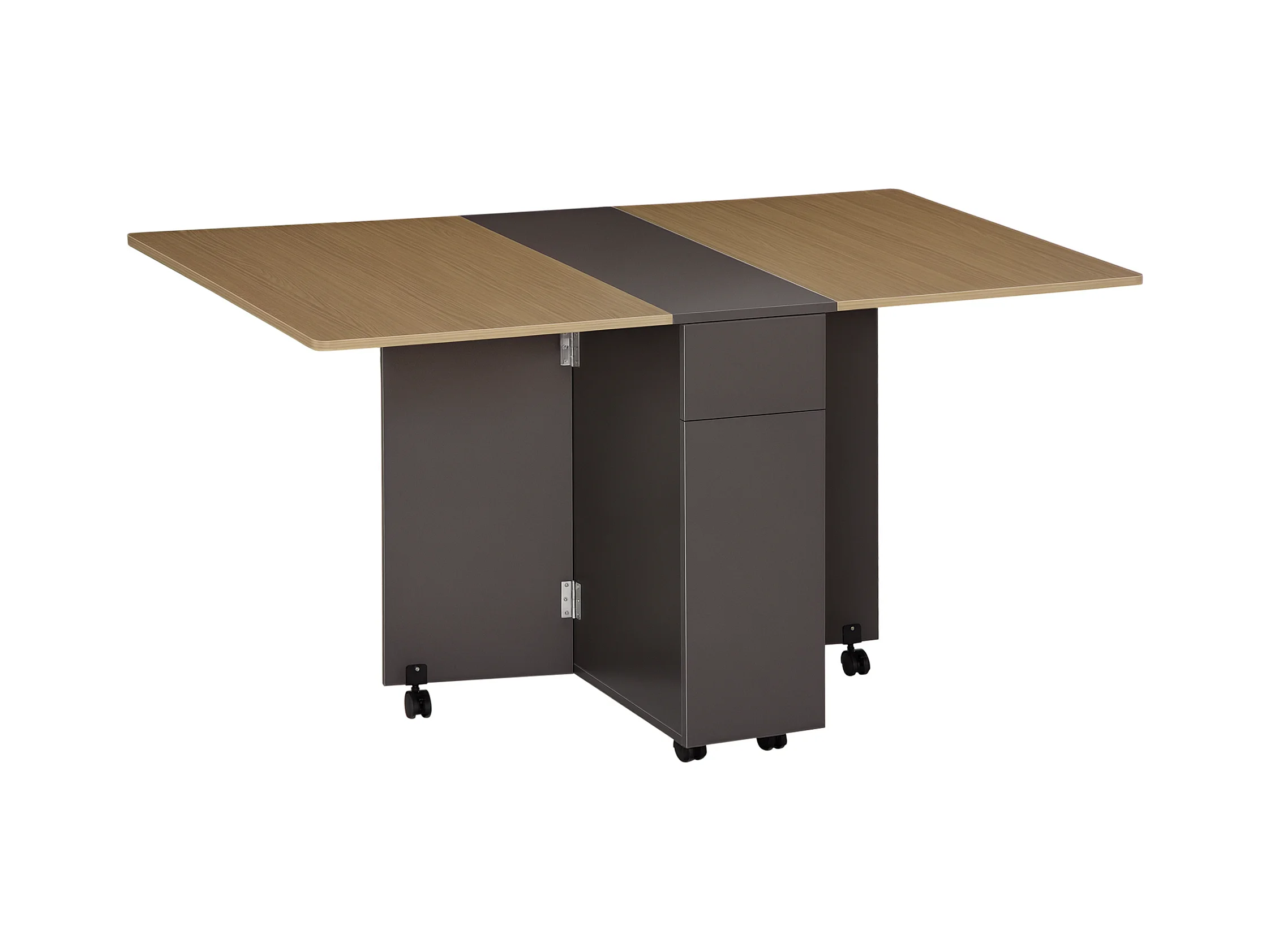 Tavolo pieghevole in truciolato 2 cassetti 1 armadietto 6 ruote