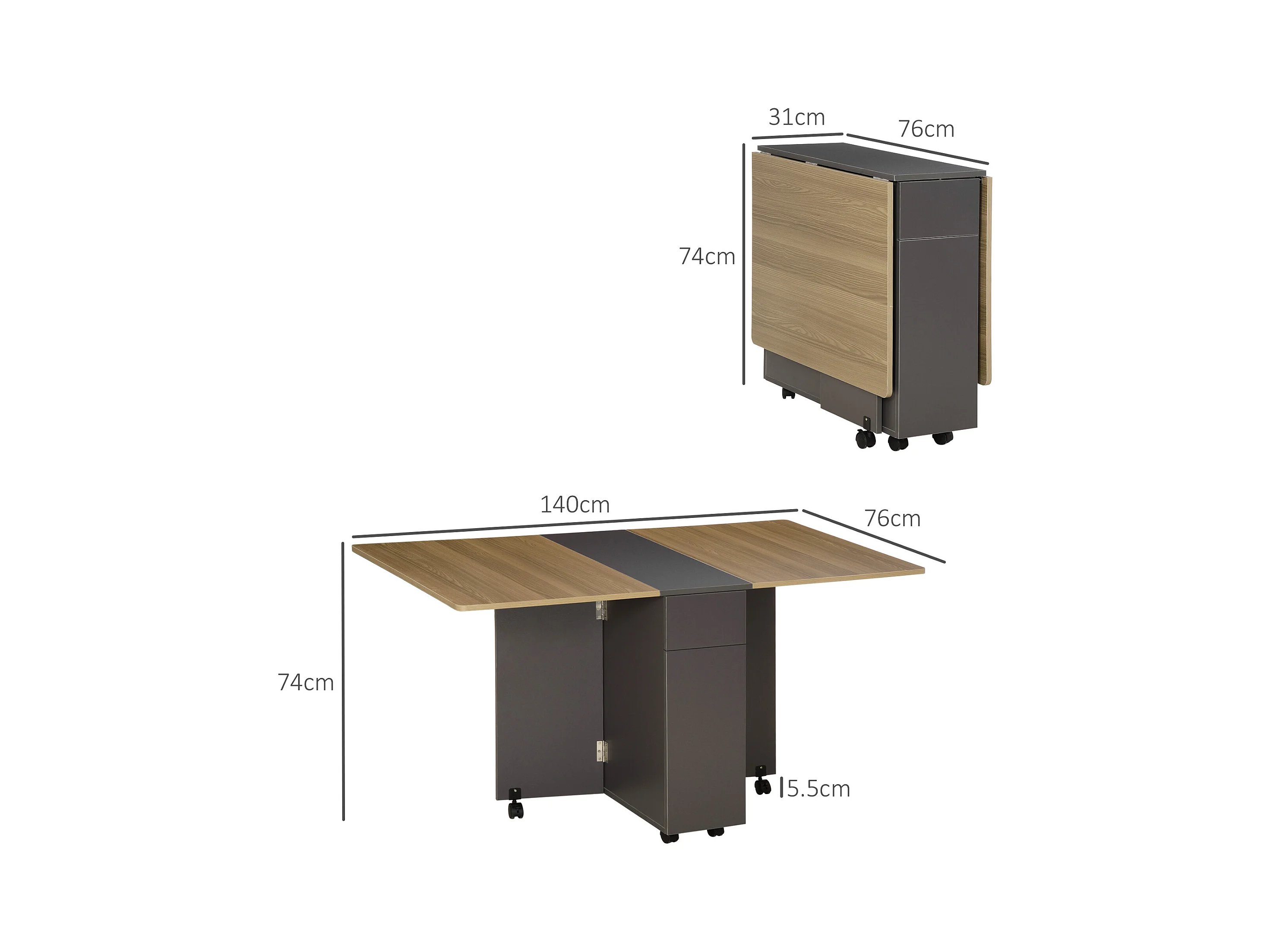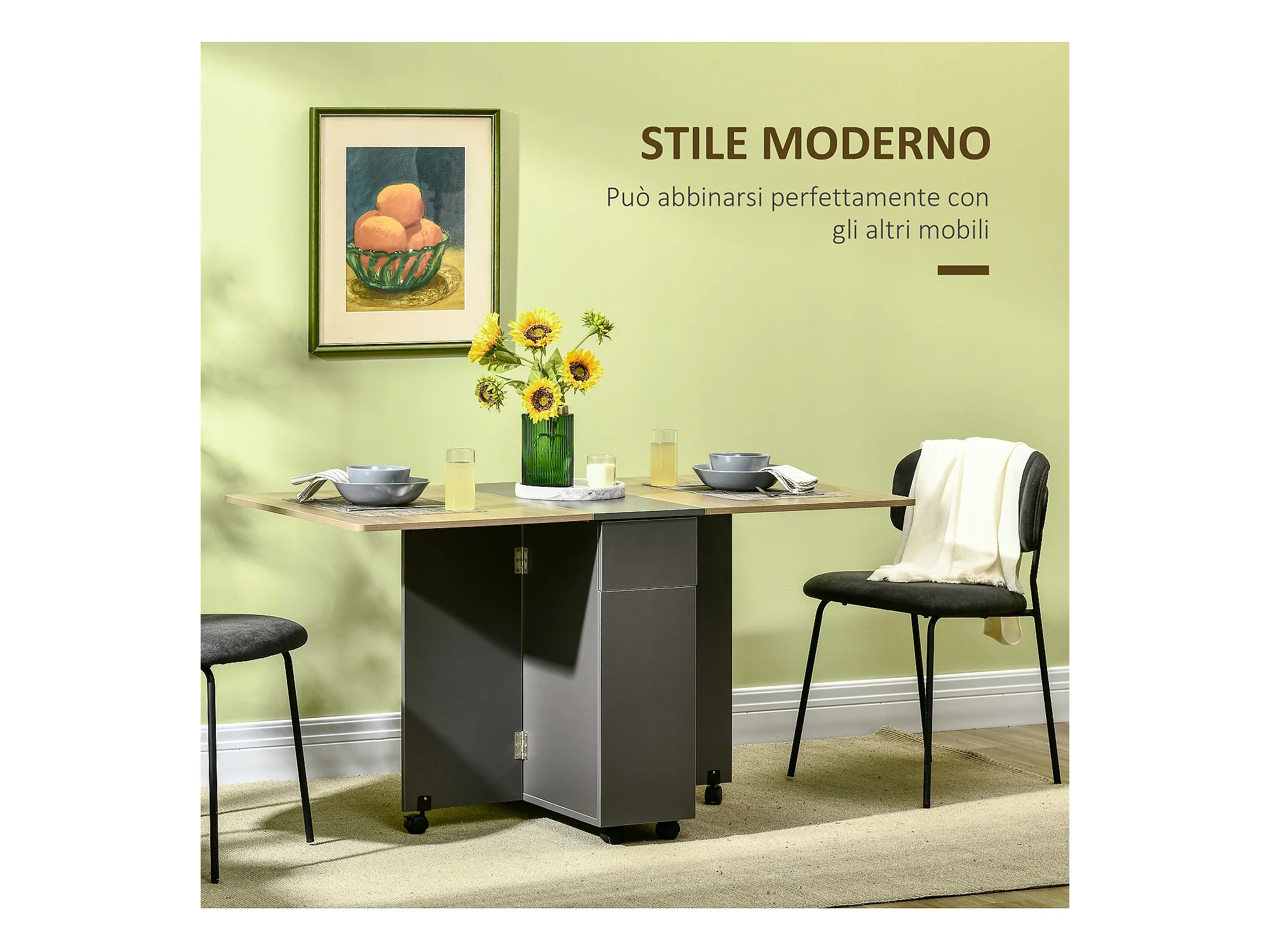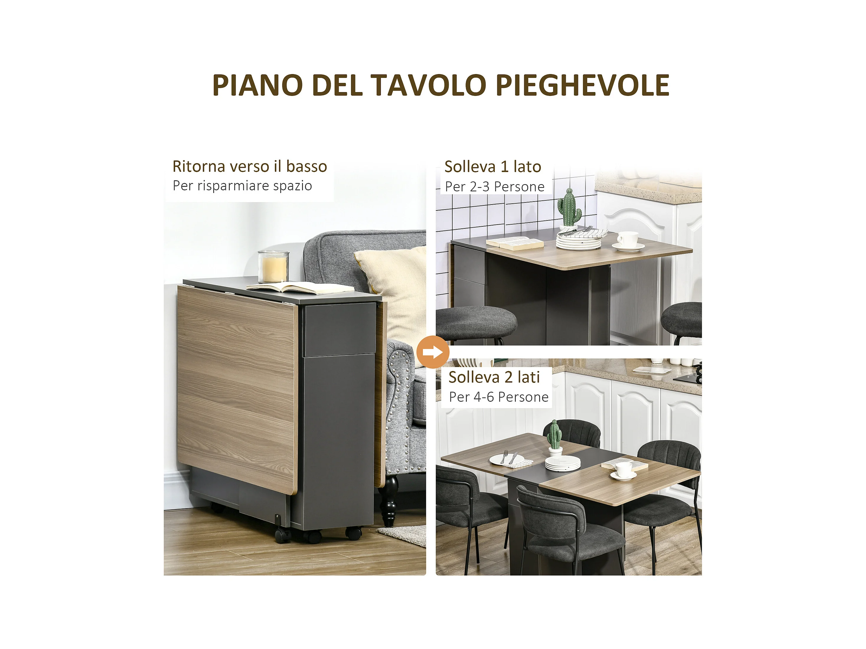 Tavolo da pranzo pieghevole 6 persone con ripiano e 6 ruote grigio