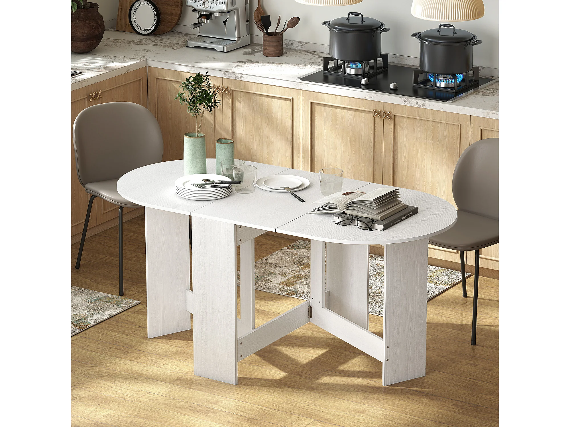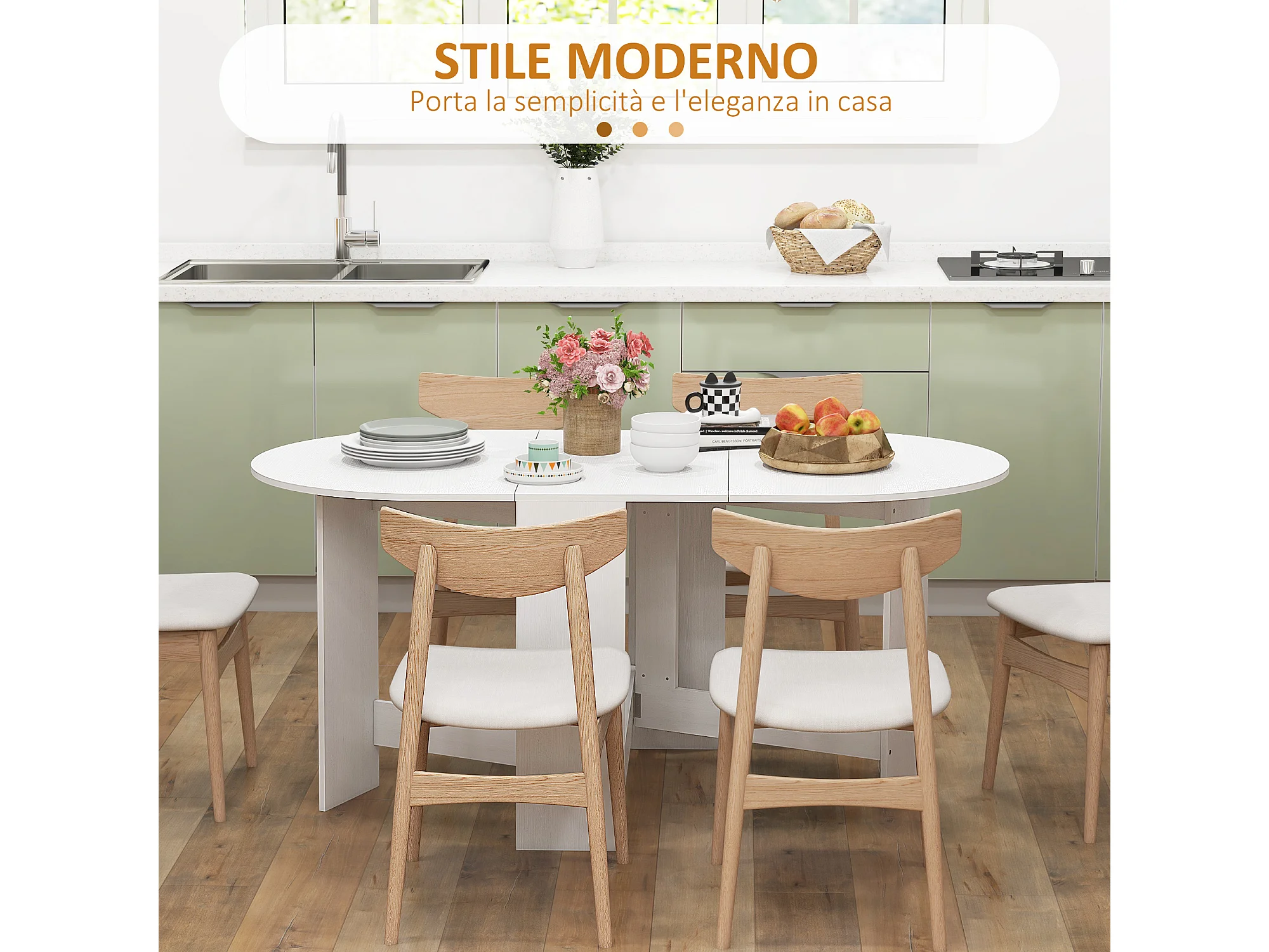 Tavolo pieghevole ovale con 2 ribalte per 6 persone bianco